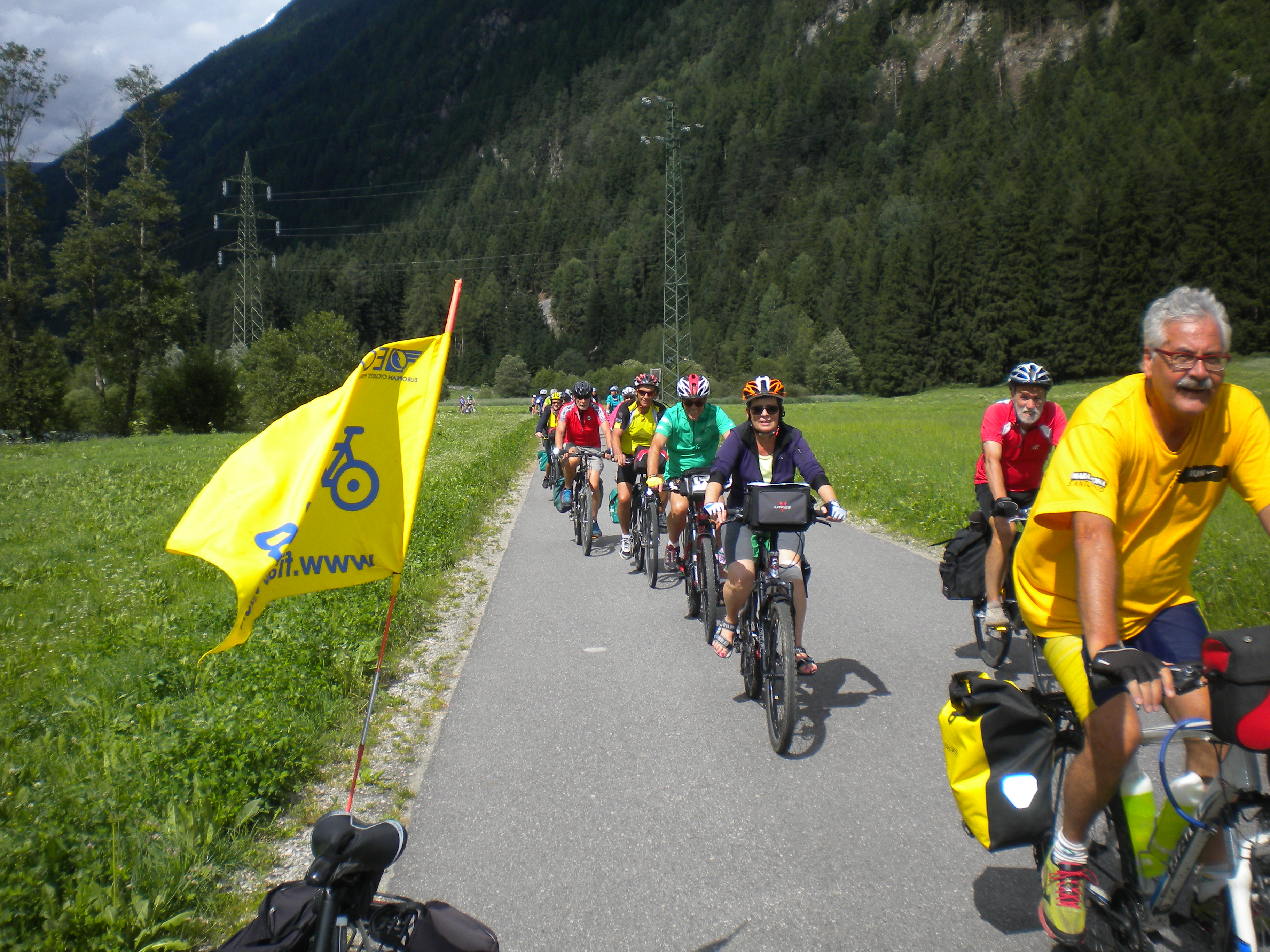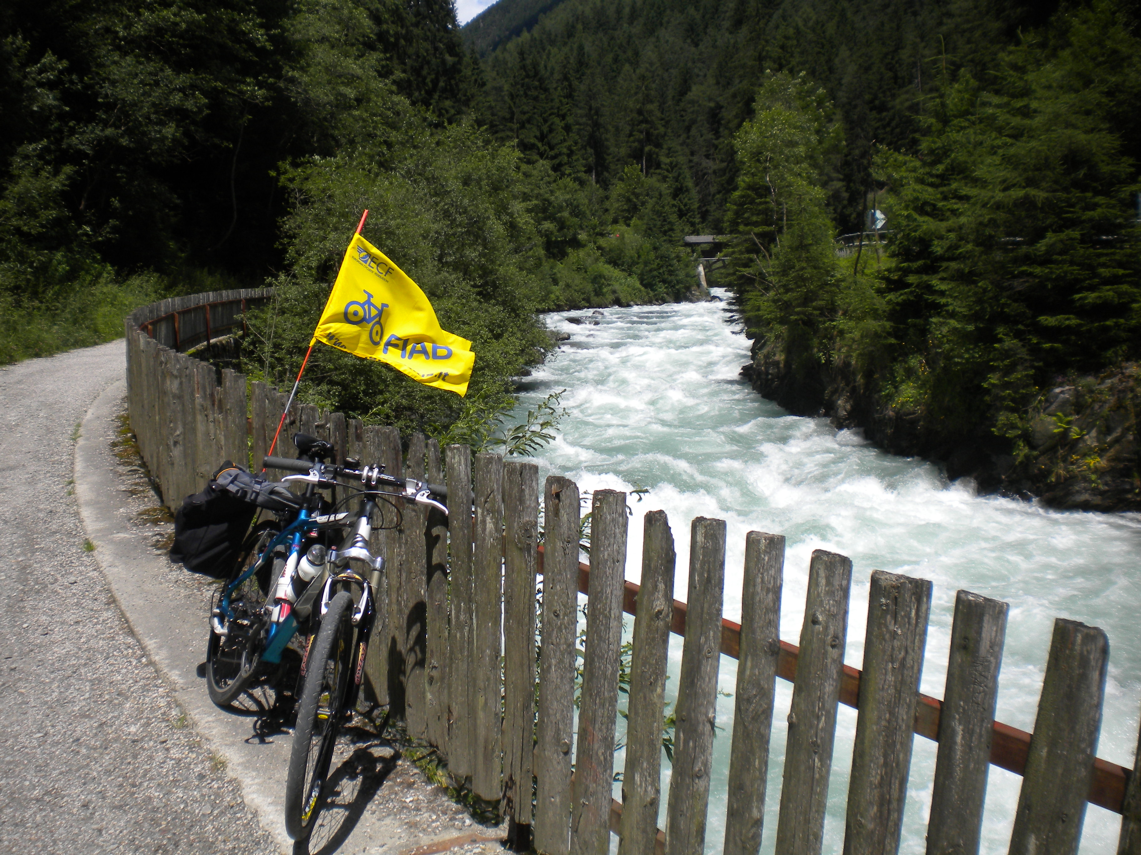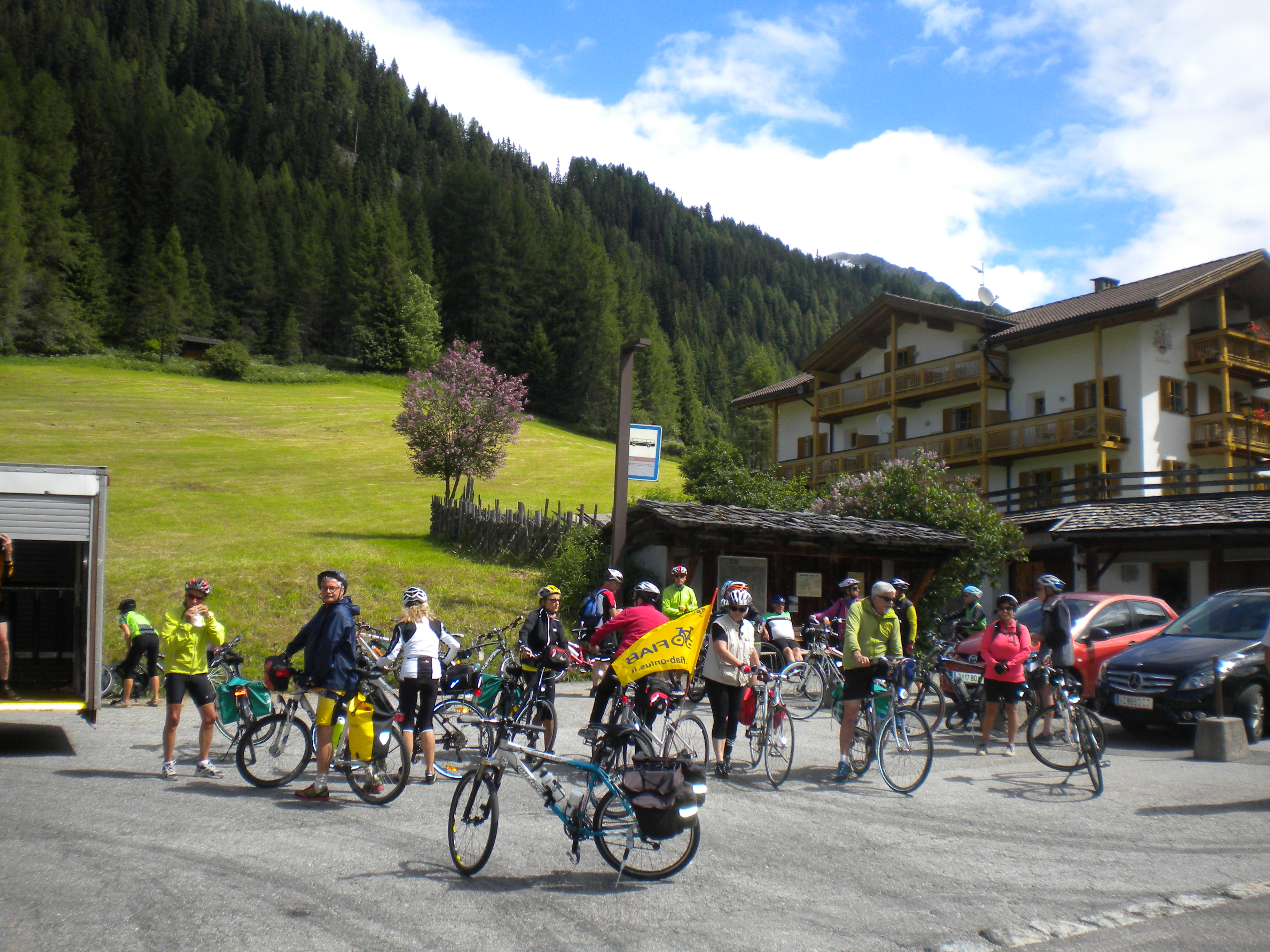 Alla ripartenza, si pedala in Val di Tures direzione Brunico fino a (quasi) Gais dove ci avrebbe dovuto attendere il nostro pullman. Solo che l’autista ha ritenuto di fermarsi alcuni km prima in una comoda piazzola. Se non che la nostra avanguardia di velocisti non lo ha visto ed al vostro bici-blogger è toccato scattare al loro inseguimento per avvisarli del necessario dietro front!