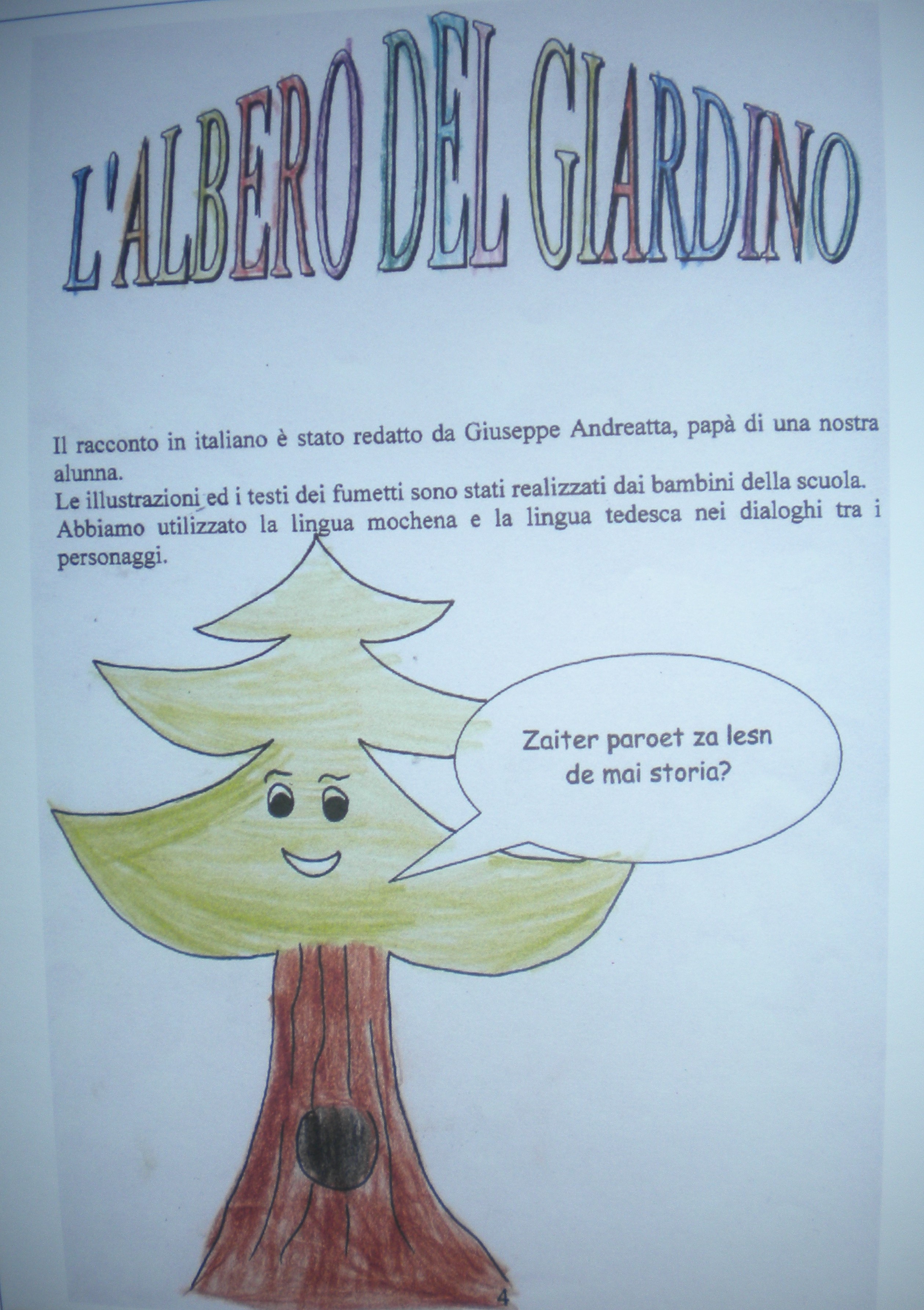 Scuola elementare di Fierozzo (TN), anni 2003-2004. Le maestre vengono a conoscenza della raccolta di fiabe e coinvolgono gli scolari che ne diventano gli illustratori. Disegni con fumetti parlanti in lingua tedesca e mochena. I titoli? Eccoli!
