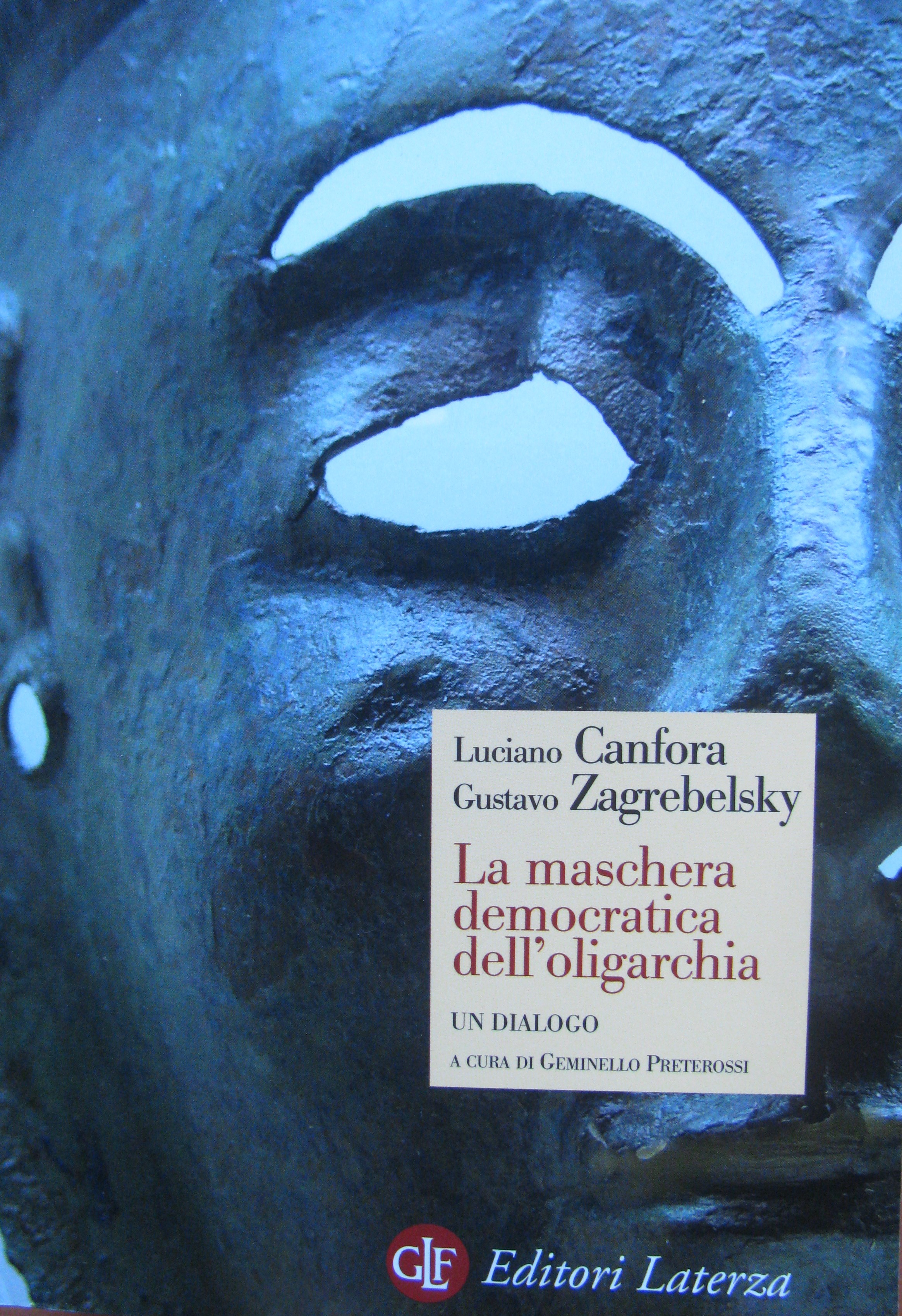 Ed ora, finito di leggere di Gustavo Zagrebelsky “Simboli al potere – Politica, fiducia, speranza†(Laterza), sono stato letteralmente catturato (anche) da un altro libro: “Canfora- Zagrebelsky – La maschera democratica dell’oligarchia†un dialogo a cura di Geminello Preterossi (Laterza). E veniamo a quest’ultimo, che costa solo €9,5, assai ben spesi! (Chi ha detto “se ho qualche soldo compero libri. Se me ne avanza, ciboâ€?).