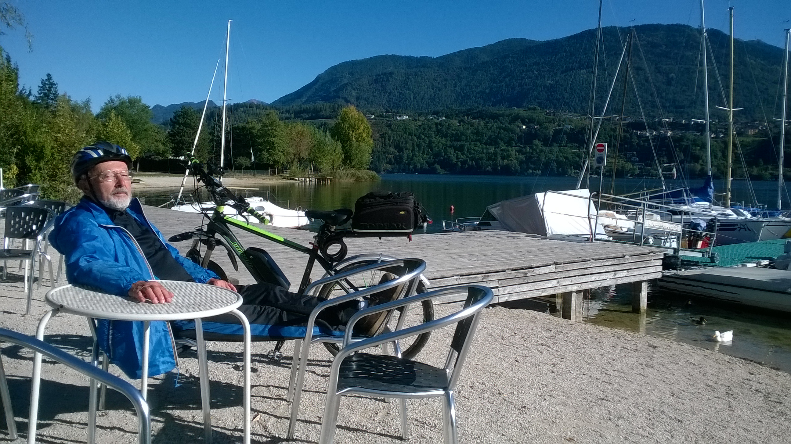 Discesona al Lago di Caldonazzo – inutile ricerca di un cappuccino (primo giorno di chiusura dei bar) – per strade poderali arriviamo al Bar ai piedi della salitella che porta a Levico. Sosta con cappuccino e brioche. Indi Levico, strada vecchia Levico, arriviamo in località Masetti.