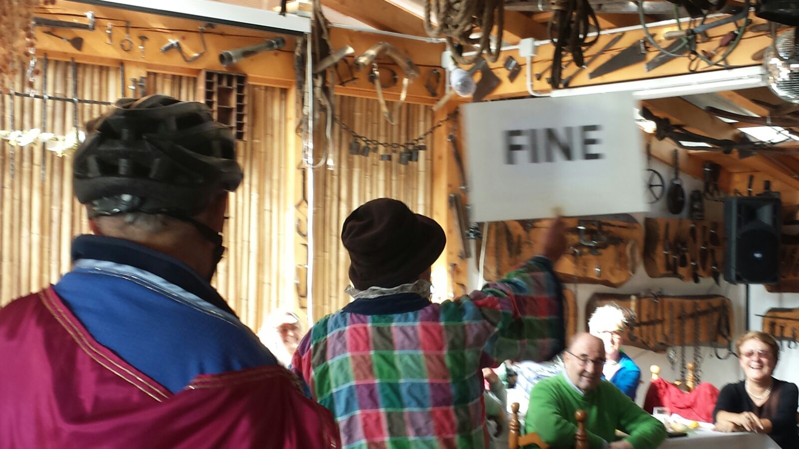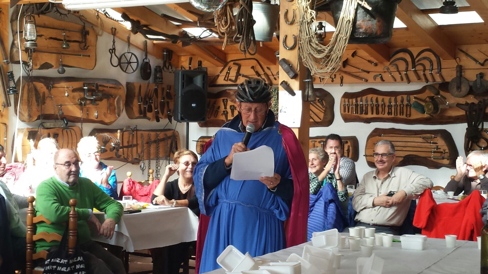 Ma veniamo alla giornata. Menù ricco di affettati, formaggi, polenta, fasoi en bronzon, caldarroste e vini freddi e caldi. I dolci poi … sentite questa: è stata organizzata una gara fra i soci per scegliere le torte da loro stessi preparate che meglio si ispirassero alla bicicletta. Una giuria composta da tre soci estratti a sorte, ha visionato e assaggiato le opere uniche dei concorrenti ed individuata la terna dei vincitori. Poi siccome tutti i salmi finiscono in gloria, quelle torte … ce le siamo mangiate. Alla fine, una speciale grappa istriana alla frutta offerta dal socio Tino.