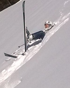 Piccole esperienze, di scala infinitamente inferiore. Può capitare: stai sciando in neve fresca, cadi, gli sci si piantano nella neve e tu non riesci a staccarti gli attacchi, non riesci a rimetterti in posizione … il tutto in soli 50 cm di “frescaâ€! (Qui a fianco: un mio amico che non nomino per via della privacy).