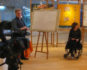 Nadia Ioriatti. Da anni combatte una grave malattia, da anni vive contemporaneamente anche una seconda, diversa vita: quella della scrittrice, “nella quale – dice – non c’è la malattiaâ€. Ieri Nadia, scrittrice con i racconti su “Trentino Mese†e i due libri “Io tinta di aria†(titolo che è anche l’anagramma del suo nome) e “Aria che allenta i nodiâ€. Libri dai quali la lettrice Stefania Tarter ha letto due racconti: “Finestre†e “Tullioâ€, mentre il disegnatore-pittore Umberto Rigotti dello Studio d’Arte Andromeda, in tempo reale, disegnava sintetiche immagini rappresentanti le scene di ogni passaggio letto.