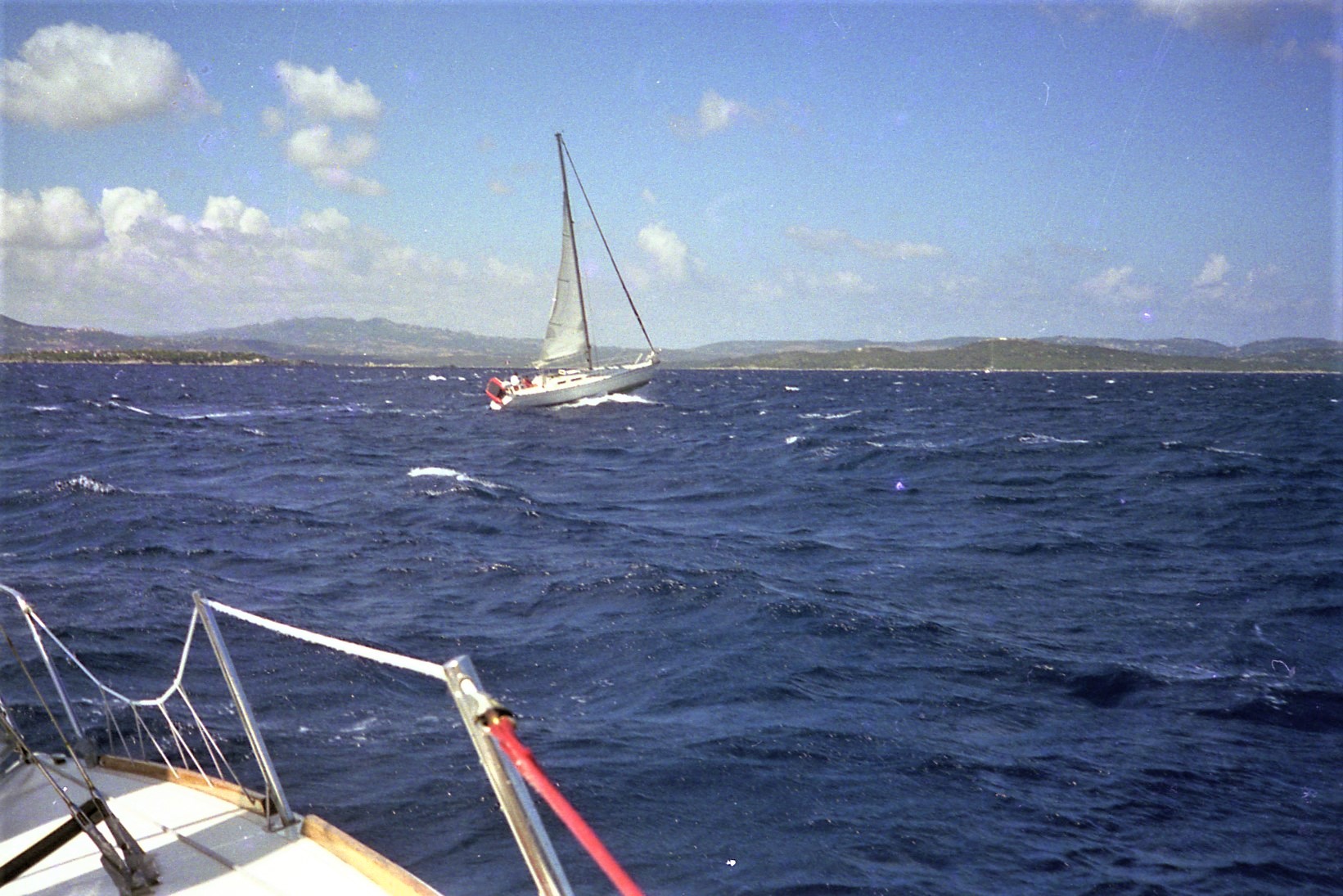 (2) la mia barca – che vedete nelle foto – è tecnicamente un “natante” e non richiede il possesso della patente nautica, che invece mi serve per condurre “imbarcazioni” a vela e a motore sino a 25 m di lft (lunghezza fuori tutto: oltre sono “navi”) anche in mare aperto e in oceano (!)  senza limiti dalla costa. Le traversate dalla Toscana in Sardegna sono state comunque  “fuori legge” perché pur avendo io la patente, navigavo con un natante non abilitato a spingersi oltre le sei miglia (oggi forse 12?) dalla costa (per la legge italiana è un po’ come andare in autostrada con un cinquantino, pe intendersi). In Francia non si richiede la patente nautica. L’assurdo qui da noi è che per conseguirla, per la parte a motore, mi è stata fatta fare una sola manovra di attracco di un barcone ad un molo, praticamente un pro-forma. Per le regate di cui alla foto invece occorre un altro tipo di “patente”: l’esercizio e l’esperienza dei ventoni dell’Alto Garda Trentino.