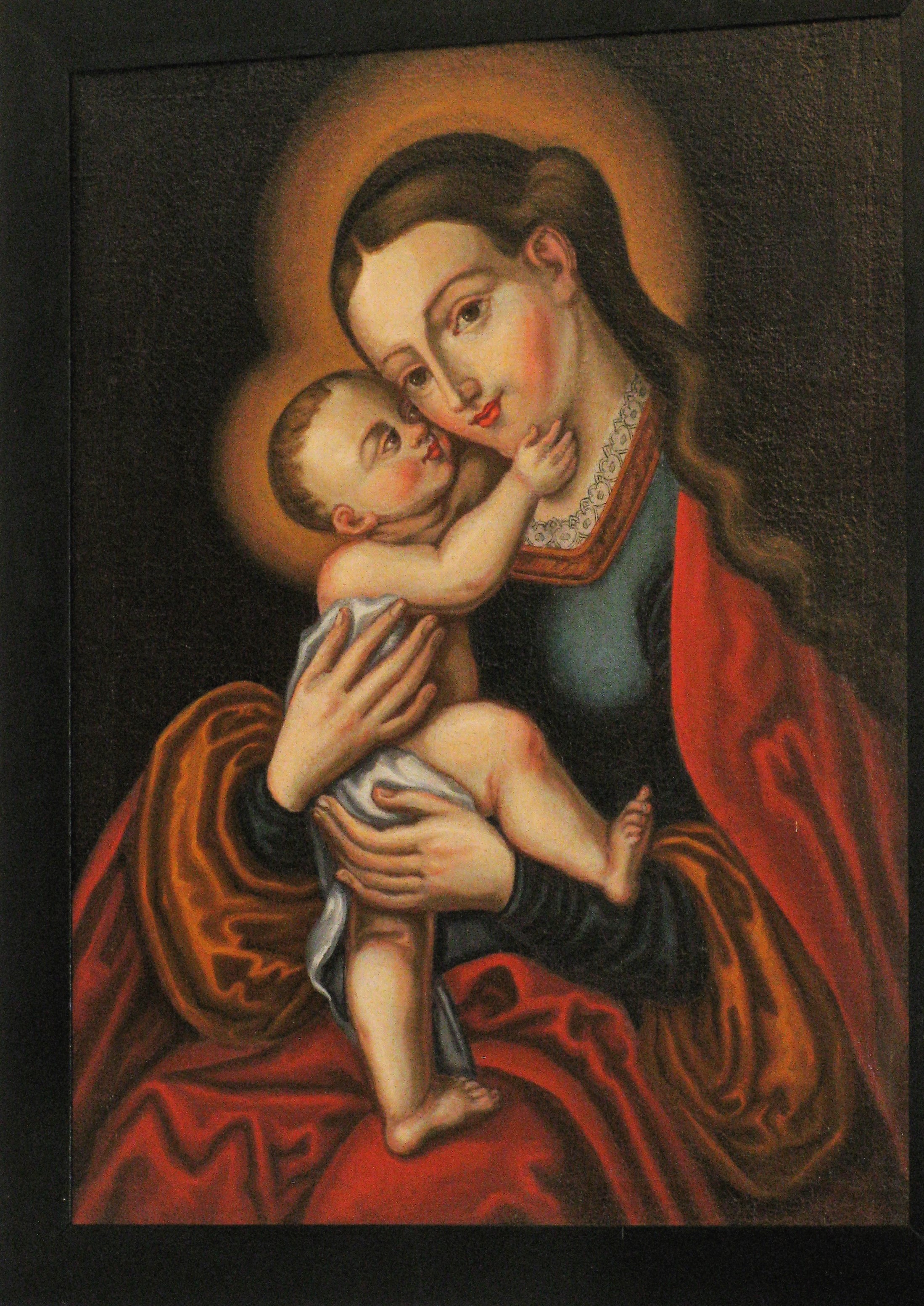 Nella nicchia laterale centrale è custodita la famosa tela della Madonna dell’Aiuto misteriosamente ritrovata nei pressi del maso della quale abbiamo parlato prima. Si tratta di una tela del ‘700 copia della famosa Maria Hilf dell’artista Lukas Cranah il vecchio, realizzata attorno al 1530. Probabilmente l’originale, ora custodito nella chiesa di S. Giacomo ad Innsbruck, era un ex voto per chiedere l’aiuto della Madonna in occasione dell’assedio di Vienna da parte dei turchi nel 1529.