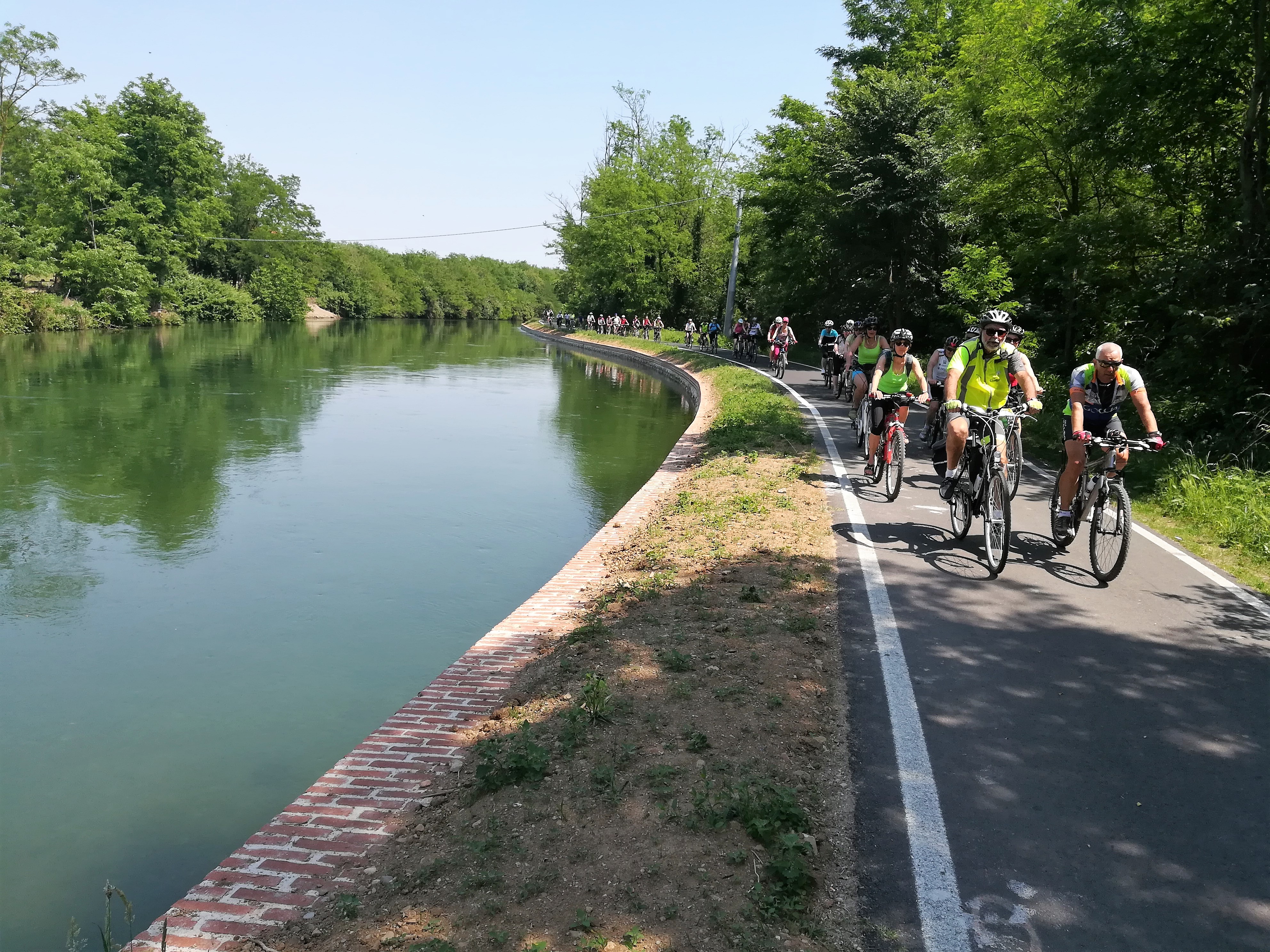 E durante il percorso, abbazie, cappelle medievali, cascine “autenticheâ€, castelli, ville, risaie … abitanti che si godono il week end in faste paesane o al sole sui margini della “loro acquaâ€, ragazzi che ci tuffano dai ponti nel “loro naviglioâ€, altri colleghi ciclisti che ci chiedono strada.