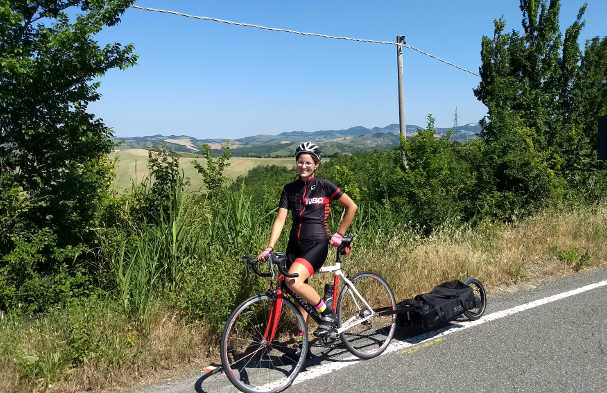 Sono Lucia, ho 34 anni e vivo a Bologna, la mia città . Ho sempre amato la bicicletta, e il mio rapporto con il ciclismo è stato un climax progressivo. L’ho sempre usata per andare a scuola, poi al lavoro, e per sciacquarmi di dosso stress e stanchezze. Quando ho iniziato a usare la bici da trekking per esplorare i colli bolognesi è scoppiata un’altra passione. Le colline verdi, il cielo azzurro, il sole e l’aria, il panorama di Bologna dall’alto. Salire e scendere, impararne nel corso del tempo le strade, scoprirne i colori e gli odori nelle quattro stagioni. Poi qualche anno fa la bici da corsa, il primo ciclocomputer, iniziare a guardare distanze e velocità . Ricordo ancora la prima volta che mi sono avventurata da sola in Val di Zena e ho scollinato da Botteghino di Zocca a Pianoro. Mi sembrava di essere chissà dove, ero un po’ intimorita e insieme esaltata dallo scoprire posti nuovi e sconosciuti. Oggi Botteghino Pianoro è un giro da “giorno ferialeâ€, un giretto per quando ho poco tempo e voglio comunque “portare a spasso la biciâ€, è diventato poco più che il retro di casa.