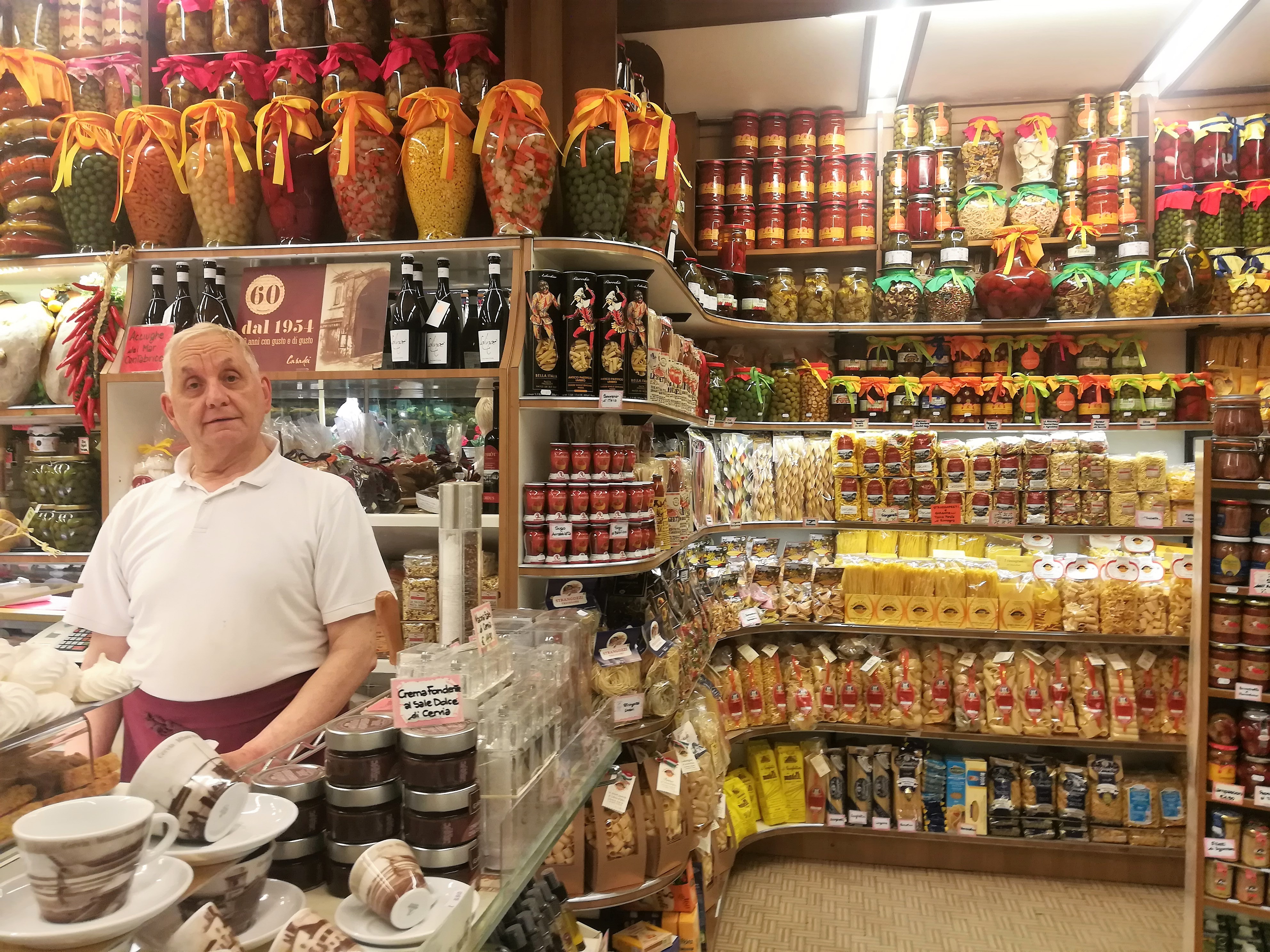 Ecco, ho voluto fermare questa realtà con due foto “a casoâ€, non studiate, non ritoccate, fatte d’istinto, niente di che, niente di speciale … così come l’occhio le ha viste. Quella sopra, la fila dei ristorantini all’aperto lungo il porto canale. Questa qui a fianco un negozio di gastronomia, in uno degli accessi al Quadrilatero, un negozio alla Van Gogh: “Scusi, posso scattare una foto†“Prego si accomodi, ma io non sono fotogenico†“Fa lo stesso, tenga … il biglietto del mio blog così si rivede†. Grazie prego ma le pare.