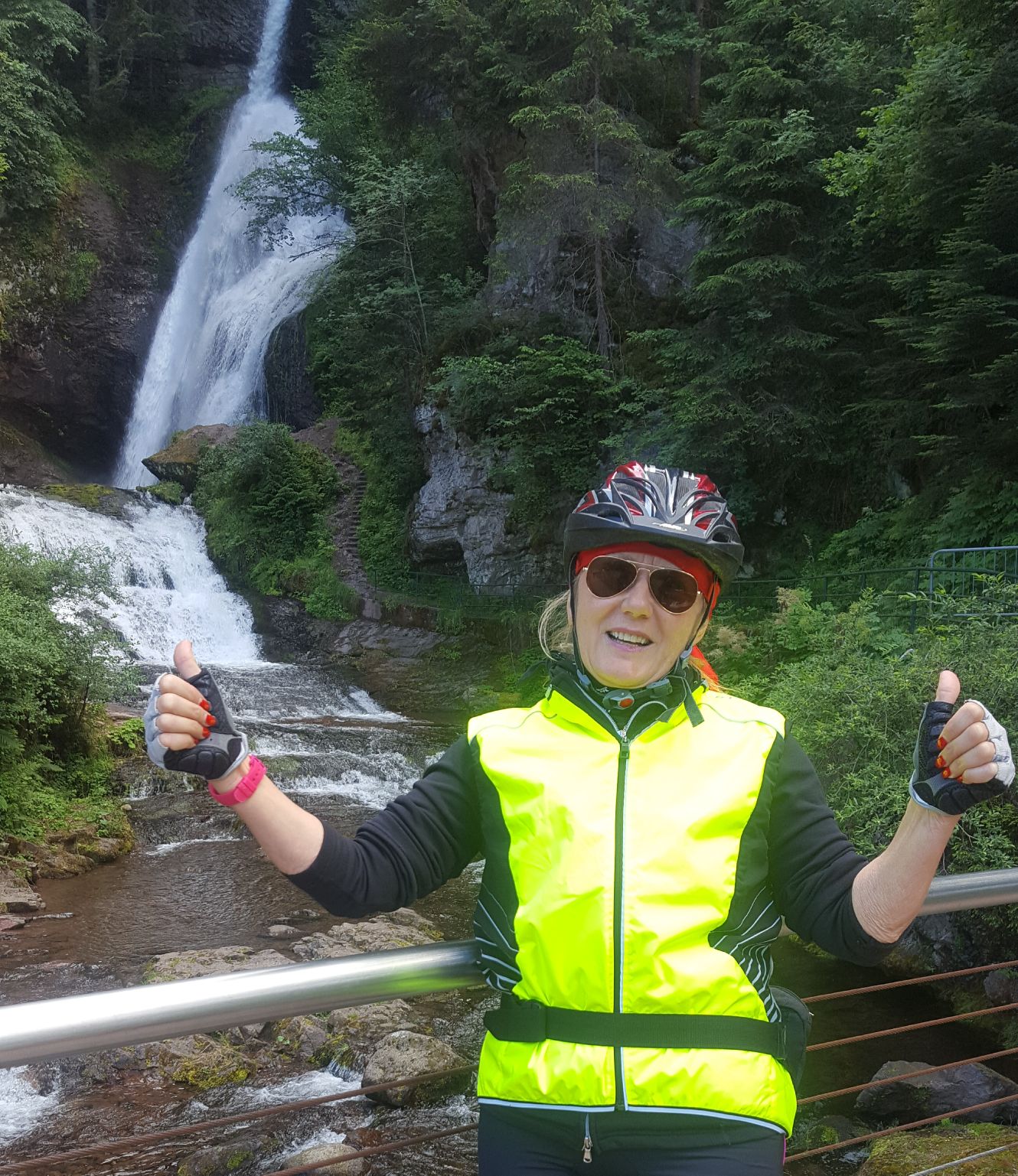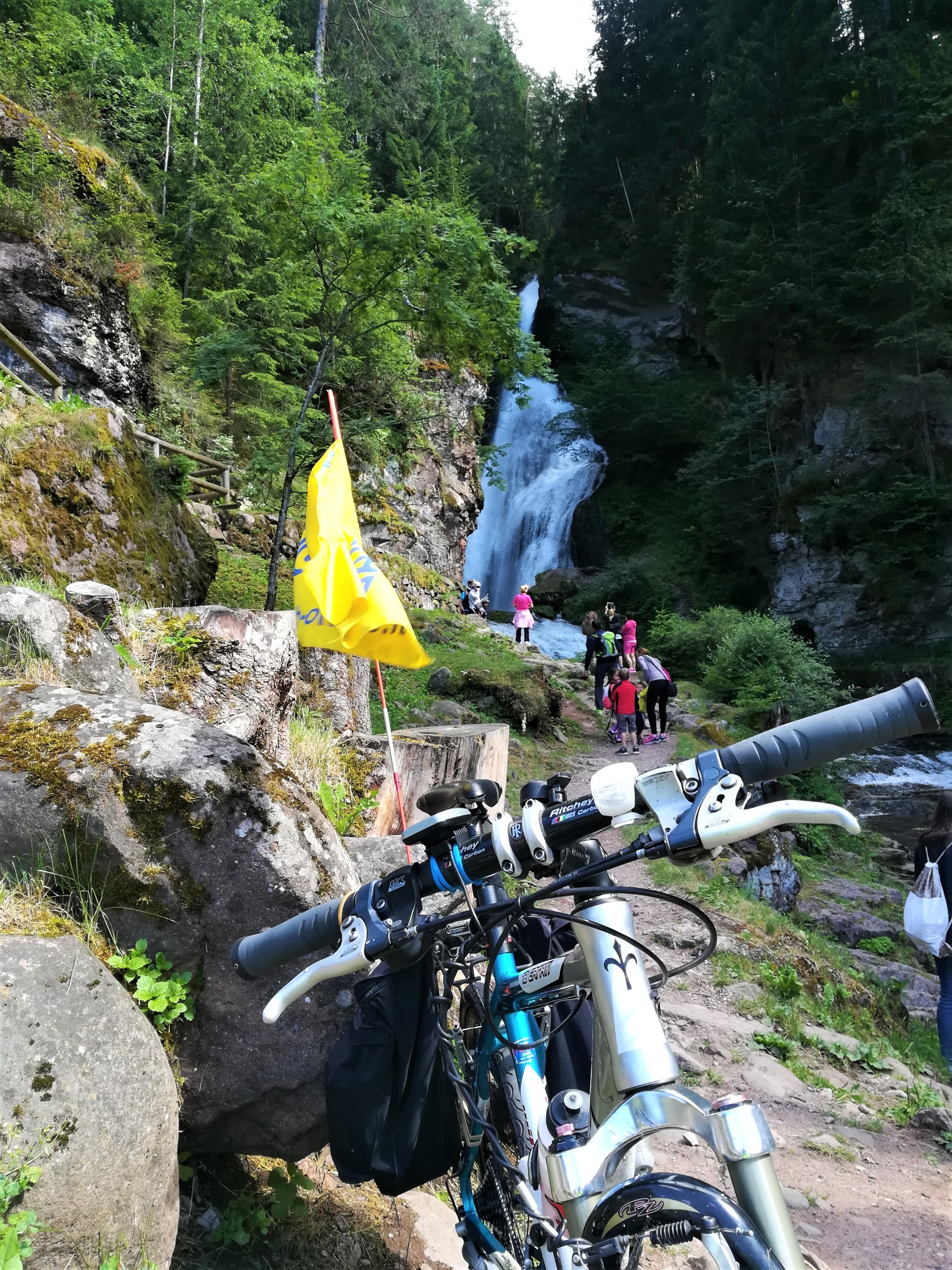 All’altezza della funivia del Cermis ci fermiamo a guardare la cascata. Indi tutti a Molina dove alcuni di noi, fra i quali io e Riccardo, facciamo un salto a salutare Guido, il proprietario dell’Hotel Italia, ormai un appuntamento d’obbligo, anche per berci una sana meritata birra. Il mio tachimetro segna 48 km, quello di Riccardo 58: lui ha fatto alcune marce indietro per recuperare alcuni ritardatari.