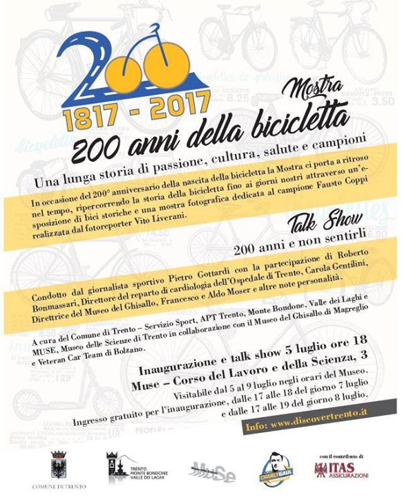 Due giorni fa, grande cerimonia. Al banco degli oratori personaggi di tutto rilievo, sportivi e istituzionali. Conduttore, un importante giornalista sportivo de l’Adige, Pietro Gottardi. Delle quasi due ore di interventi che hanno preceduto il taglio del nastro dell’interessante mostra, la maggior parte è stata dedicata allo sport del ciclismo, meno alla bicicletta, alle sue regole e al suo sviluppo. Ed allora mi sono preso la briga di dire io qualcosa (solo qualcosa, per carità , lungi da me voler esaurire l’argomento!) su quattro temi: