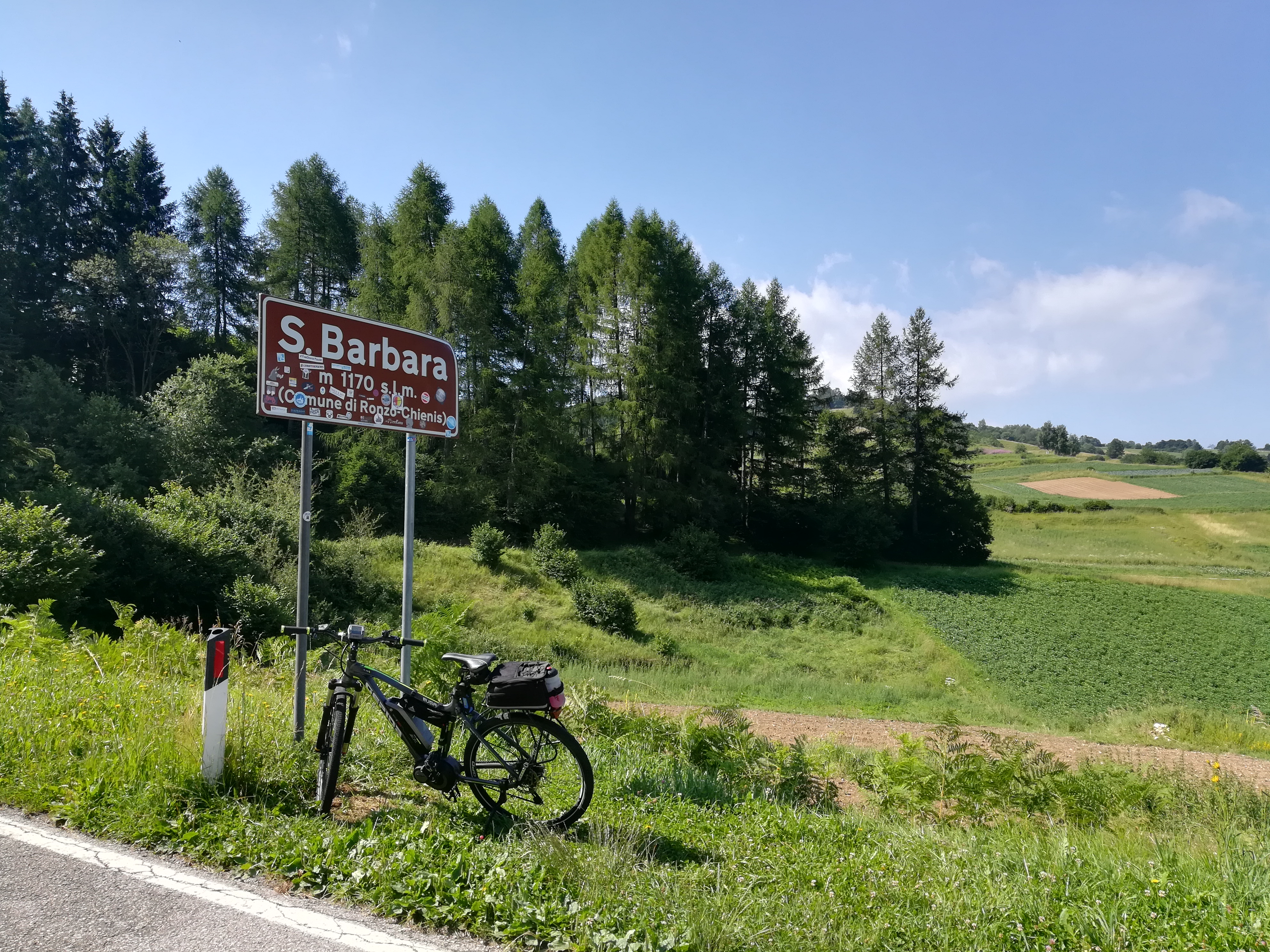 Dallo scollinamento (S. Barbara) sono sceso lungo la Val di Gresta fino a raggiungere il Lago di Loppio. Indi, scavalcato il Passo S. Giovanni, discesone sino a Torbole e Lungolago fino a Riva del Garda. Tot. 46,5 km. Provate, gente, provate! Ma attenzione, anche se avete la e-bike, per fare salitone del genere dovete essere comunque allenati: io ho atteso di aver fatto 2000 km di pianura, prima!