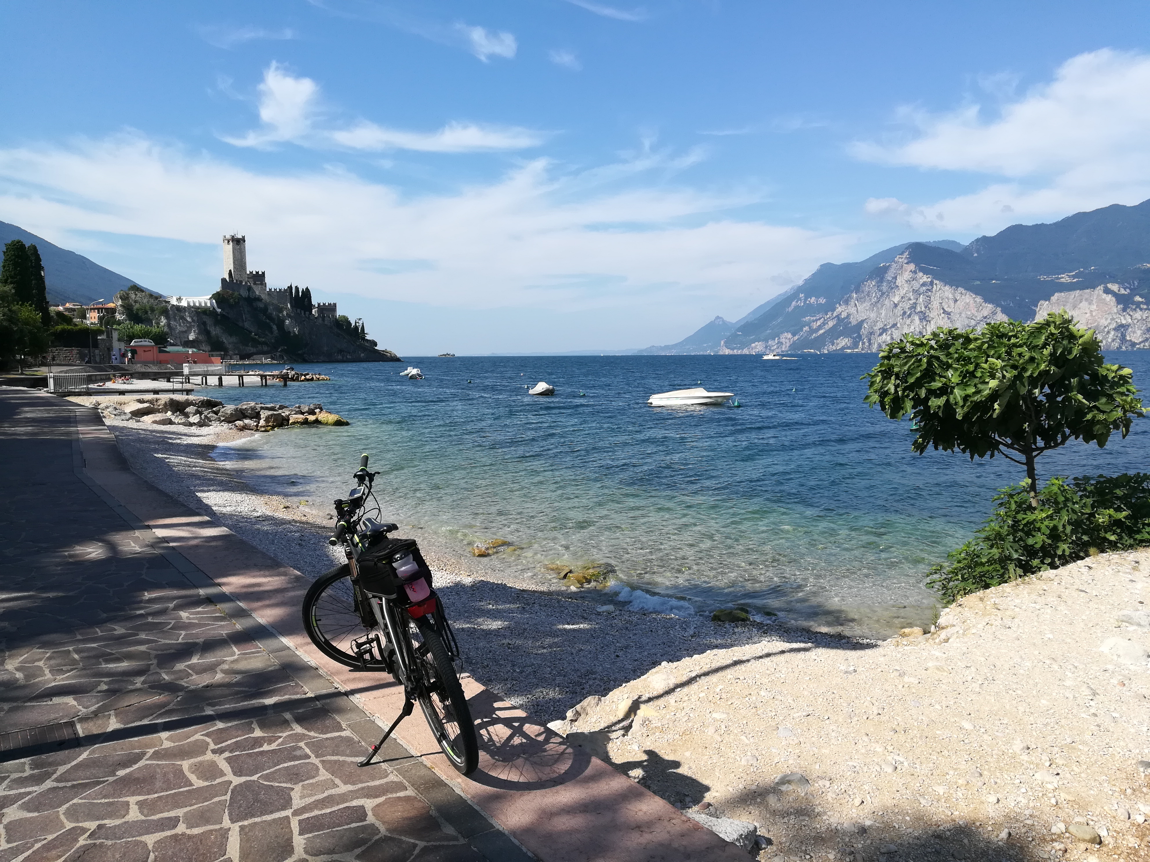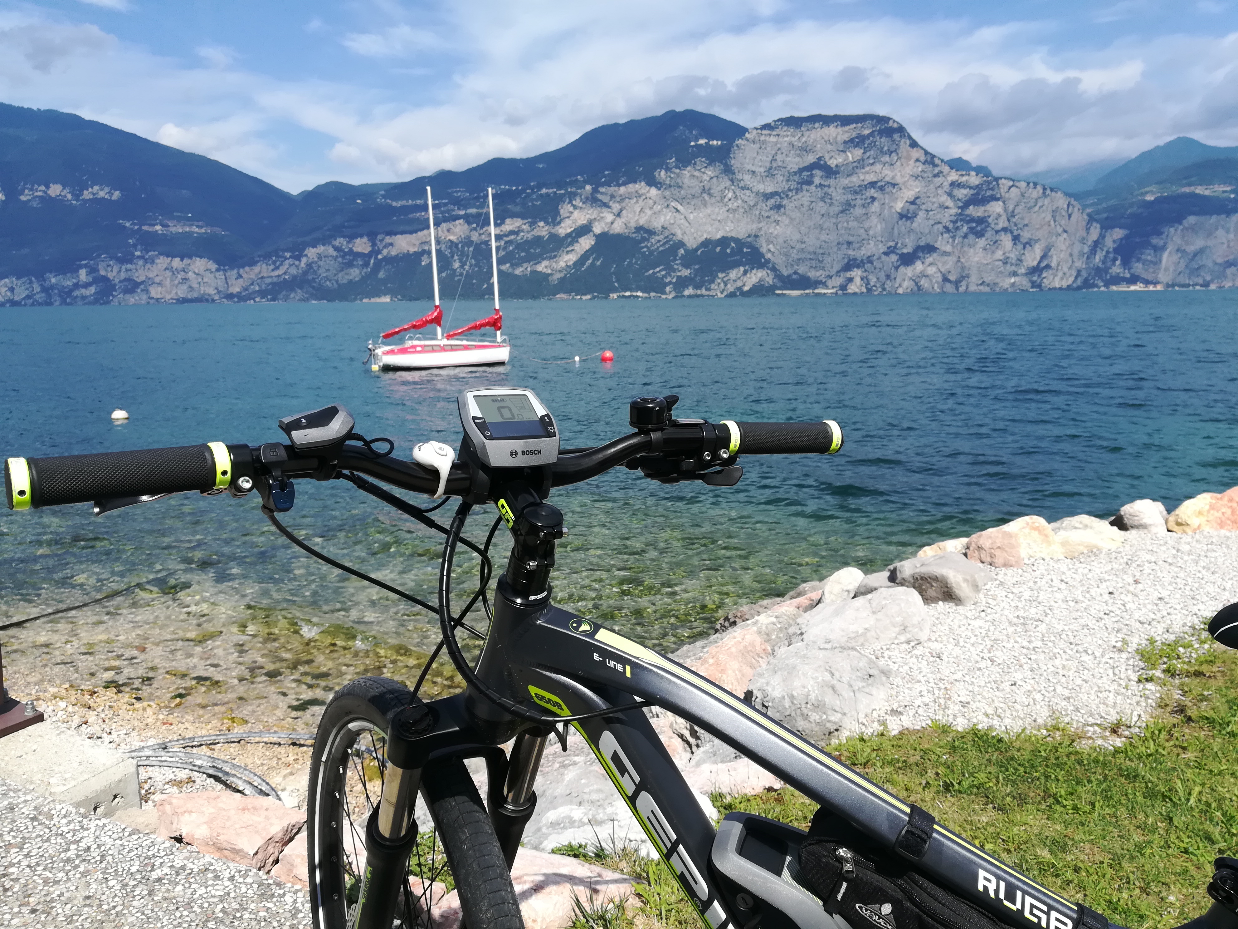 Morale: in pianura avrei faticato meno con una bici a pedalata non assistita del peso fra i 10 e i 15 kg (bici da corsa- mtb) piuttosto che dovendo spingere una elettrica che pesa 25 kg. Ma questo perché con i miei oltre 2000 km pedalati nella stagione, sono già abbastanza allenato. Se invece non sei allenato e ti mantieni intorno ai 15-20 kmh, allora la E-bike ti aiuta veramente. Mi dico: come sarebbe-sarà bello se e quando fosse-sarà realizzata la pista ciclabile intorno a tutto il Lago di Garda!