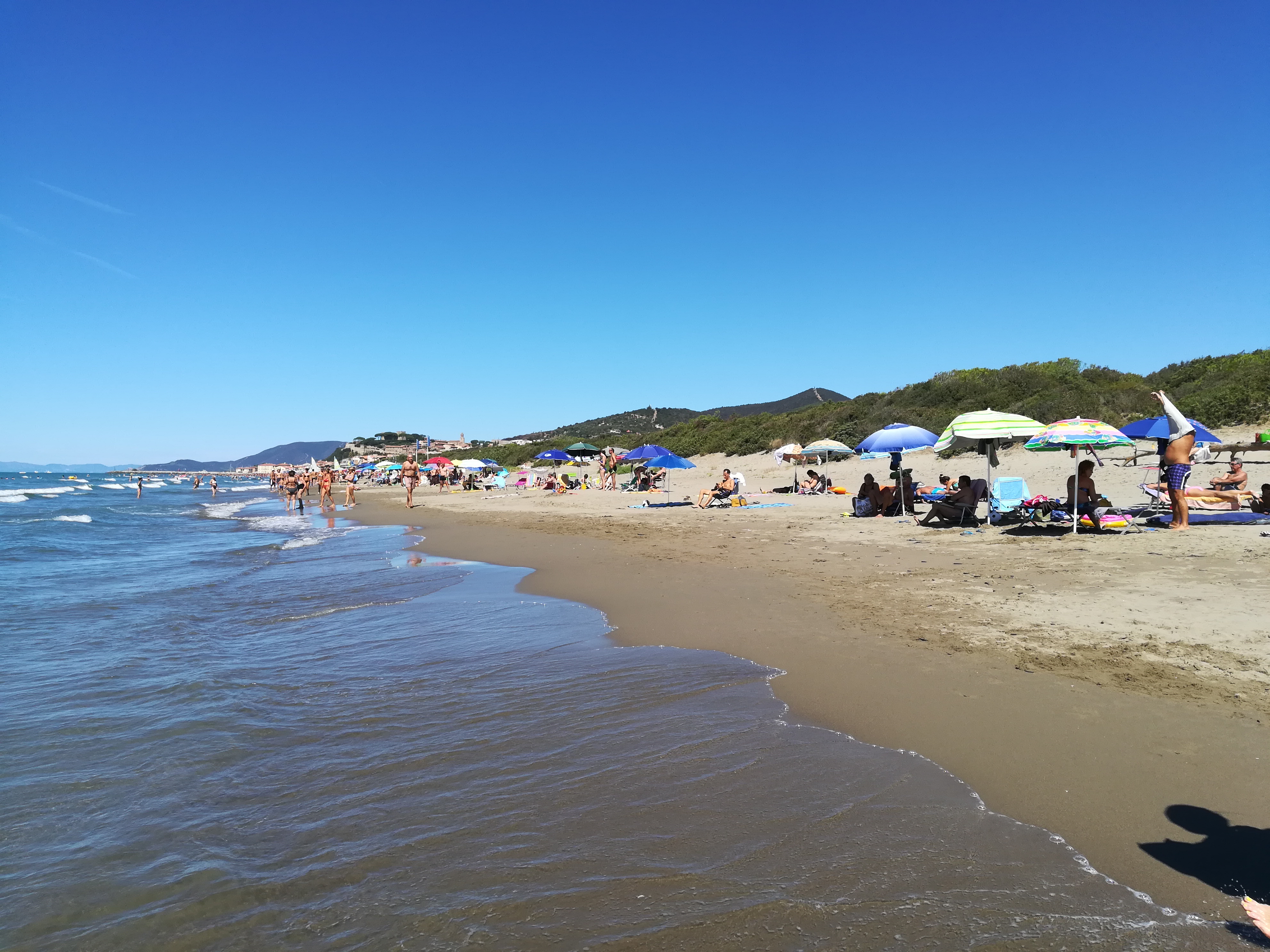Sullo sfondo: Castiglione della Pescaia le cui colline boscose sono state diligentemente solcate da disboscamenti tagliafuoco. Chissà , forse si potrebbe prendere esempio anche per Riva del Garda, per la montagna che sovrasta la centrale elettrica ….