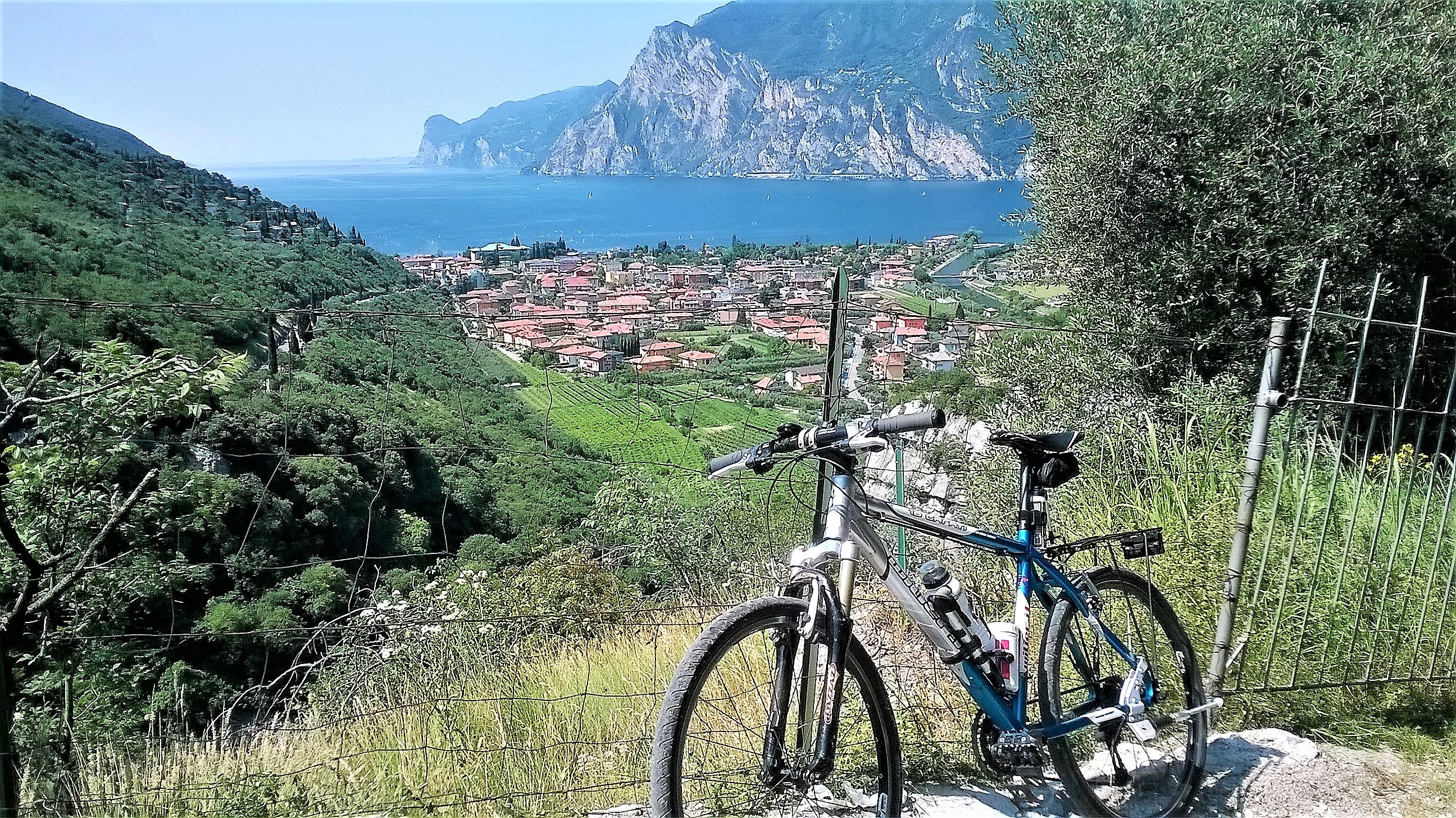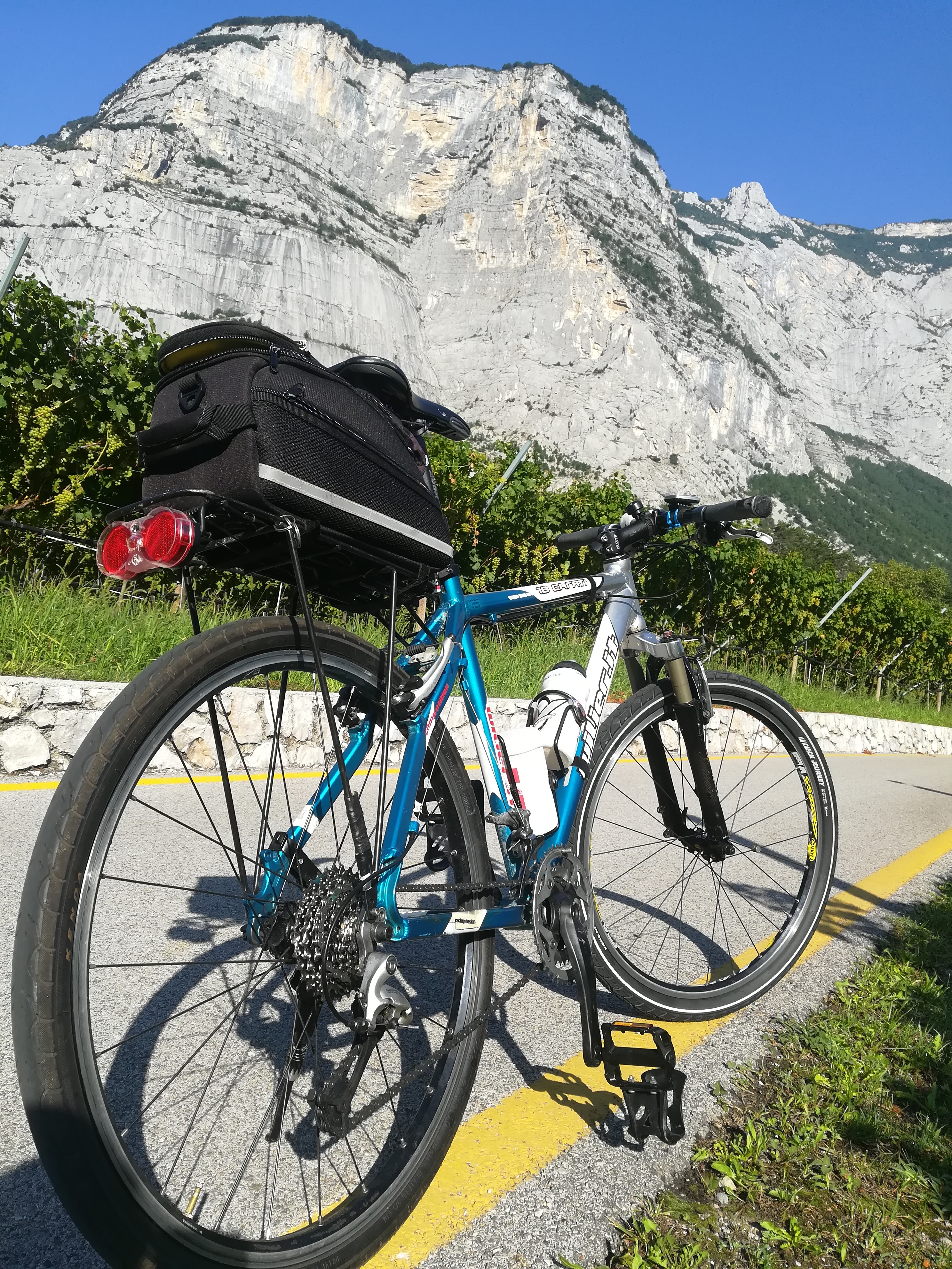 Il tratto più faticoso? Le salite, direte voi! E invece no. La maggiore fatica l’ho provata nei 25 km da Sarche a Riva del Garda, con una bici da 25 kg, pneumatici da fuori strada su asfalto, nessuna assistenza elettrica e soprattutto un forte vento contrario (la famosa Ora del Garda!).