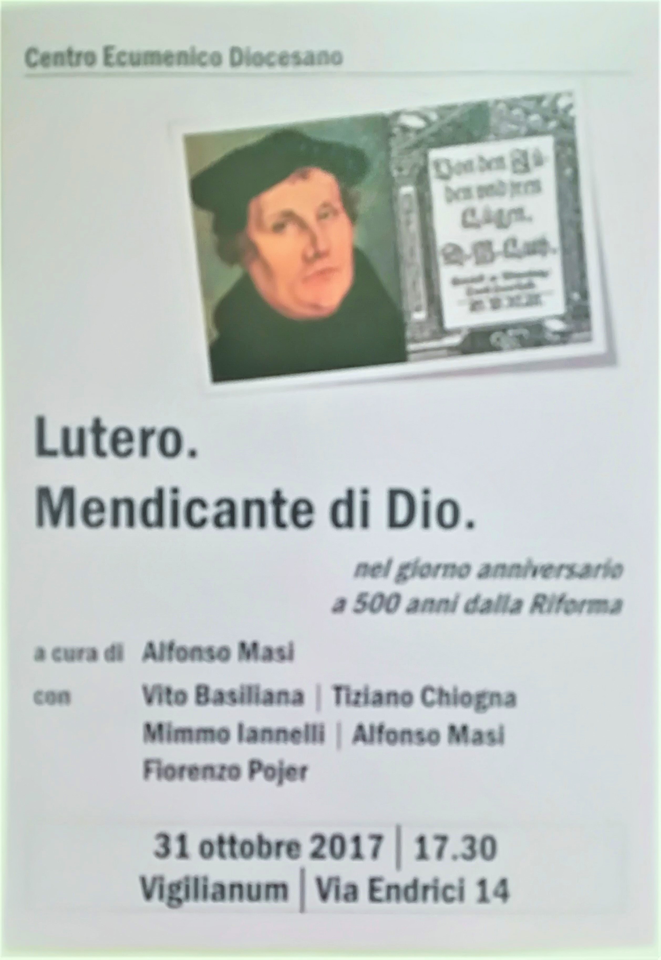 Ieri, il giorno esatto, 500 anni fa … la sua riforma. Ri-formare, dare nuova forma a -. Tutto cominciò contro. Contro la vendita delle indulgenze, il mercimonio della misericordia. Si paga il biglietto per cancellare i peccati commessi, quelli futuri e quelli dei propri defunti. A catalogo.  Poi da cosa nasca cosa: ed ecco il ritorno alla scrittura: “Ditemi dove e come le mie tesi contraddicono la Sacra Scritturaâ€. Non ebbe mai risposta. Il suo peccato? Oltre che opporsi al mercato della salvezza eterna, l’avere preteso di essere un seguace delle Sacre Scritture e non del papa di turno. Dichiarato eretico da un tribunale laico (!?). Impero e Chiesa, due ordini costituiti reciprocamente e reciprocamente autoreggenti. Come le calze delle donne. Tertium non datur.