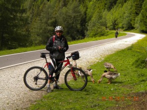 Su di una salita, mi si apre un anello della catena, il cambio si storce, la bici si ichioda. E’ finita (la gita) , penso. Nientaffatto! Edoardo ribalta la bici, cerca due belle pietre e a sassate fa rientrare il perno dell’anello neklla sua sede. Poi, a mano, raddrizza iol cambio ed io riparto. Magico Edoardo!