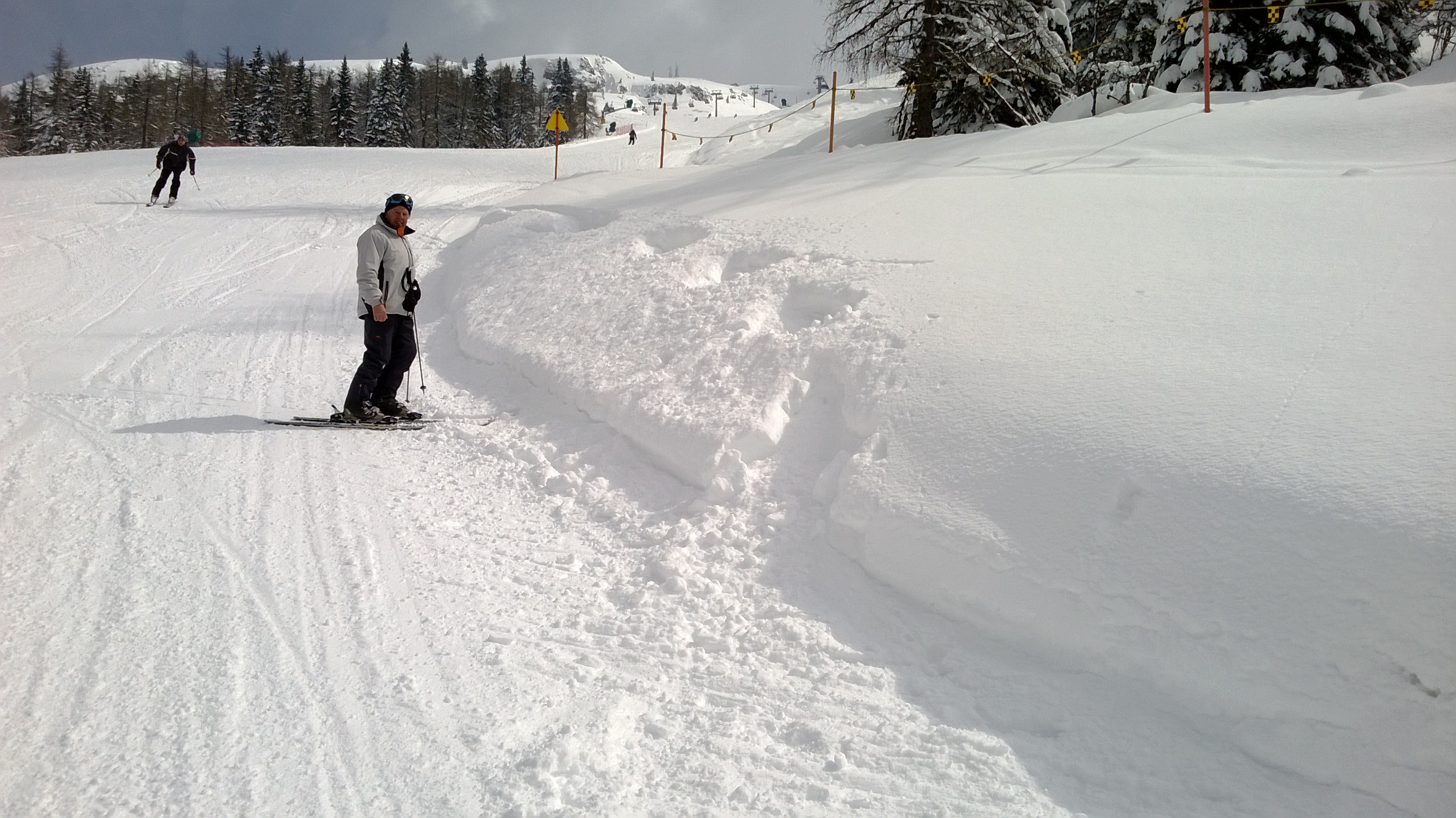 P.S.: Evvabbè, lo confesso, dopo avere pubblicato questo post sono andato a farmi le mie tre ore di sci in Paganella. Era qualche giorno che “mancavo” … se ne sono accorti gli addetti agli impianti (“Eri in ferie?” Mi chiedono, tanto siamo amici … In ferie … evidentemente quando io sono a sciare mi considerano al lavoro … uao!) e anche il gestore della Malga Zambana, Mirko: “L’è un pez che non ne vedem … eri malato?” Insomma, mi controllano (amichevolmente!). Eppoi (eppoi) a sciare mica ero da solo! Intanto c’è Claudio, un nonno come me eppoi (v. sopra) in questi giorni ci sono anche Alessandro, nato a Bologna e residente lavorante in Venezuela e la bella Erica di Legnago (ciao Erica, le spalle … le spalle sempre a valle e le mani avanti! Dice … “La fai facile tu che … quanti giorni hai detto che scii all’anno? Quanti? Cosa? 50? Vergognati!”  Naturalmente ho dato loro il mio bigliettino da visita-blogger … vedremo se mi leggono: domani si replica, appuntamento alla funivia alle 08,45!