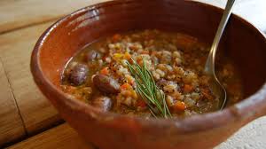 - Versare nella pentola col soffritto (P2)  buona parte dell’acqua di bollitura della prima pentola e fare cuocere qui il farro (v. tempi di cottura indicati sulla relativa bustina).