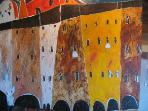 Di Matteo Boato ammiro la capacità di coltivare, in contemporanea agli studi pur impegnativi di ingegneria civile, anche interessi artistici, in particolare la musica e la pittura. Poiché nulla conosco di musica e non essendo di professione un critico d’arte, mi permetto di limitarmi a pochi commenti introduttivi alla sua attività di pittore, passione che ci accomuna e che entrambi condividiamo, lui ormai da professionista ed io da appassionato dilettante. Premetto che conosco l’opera pittorica di Matteo per aver visto “in anteprima†le immagini che verranno proiettate questa sera e per aver visitato il suo sito internet. Le pitture di Matteo raffigurano spesso ambienti cittadini, quali case e piazze, che sono state l’oggetto dei suoi studi di ingegneria, ma che vengono riviste e trasformate con l’immaginazione dell’artista e riprodotte sulla tela con colori primari (rossi, gialli, blu) particolarmente vivaci stesi con una pennellata materica, quasi tridimensionale. La sua è una tecnica pittorica diversissima dalla mia e che proprio per questo ha destato la mia curiosità e ammirazione.