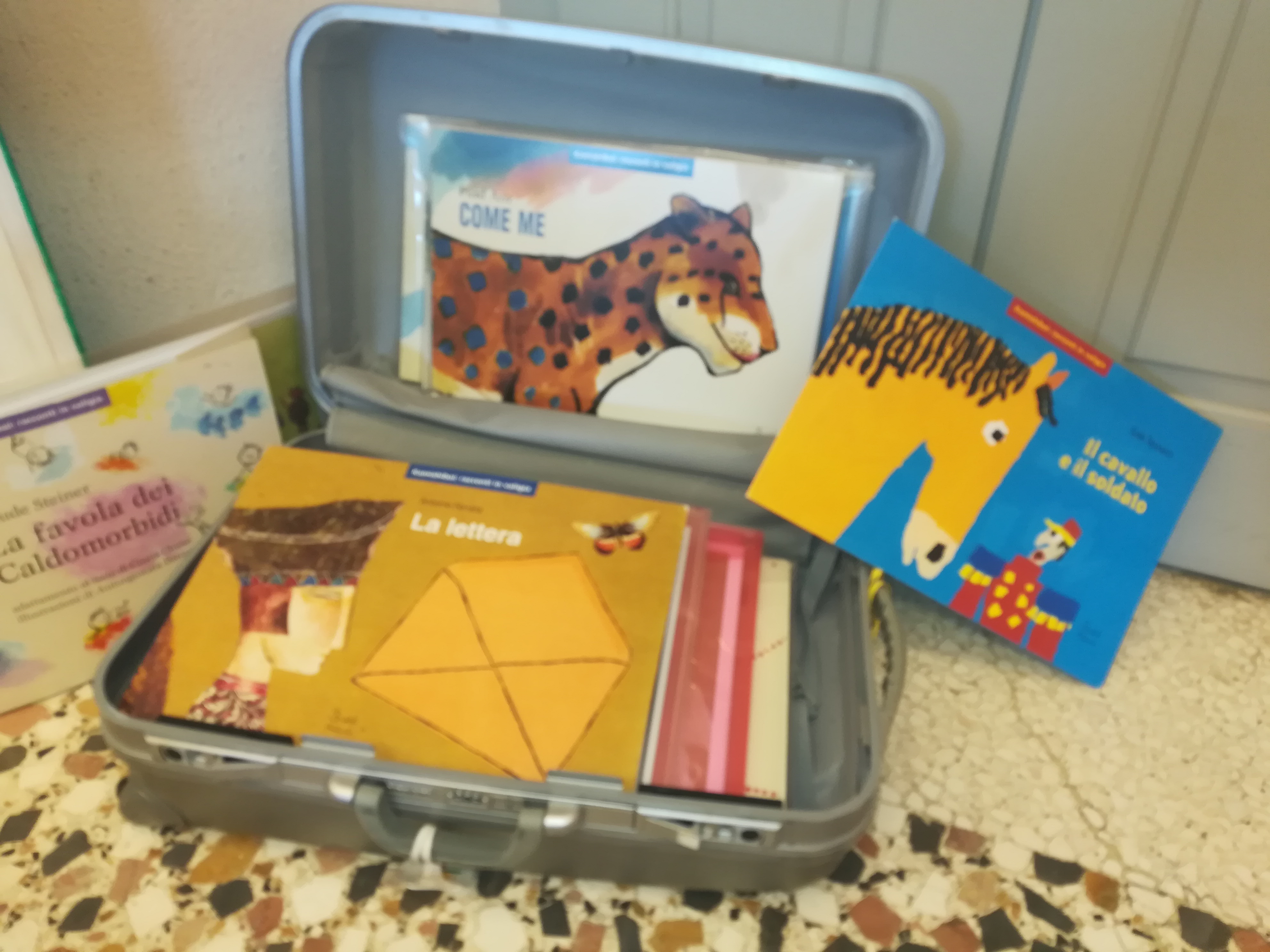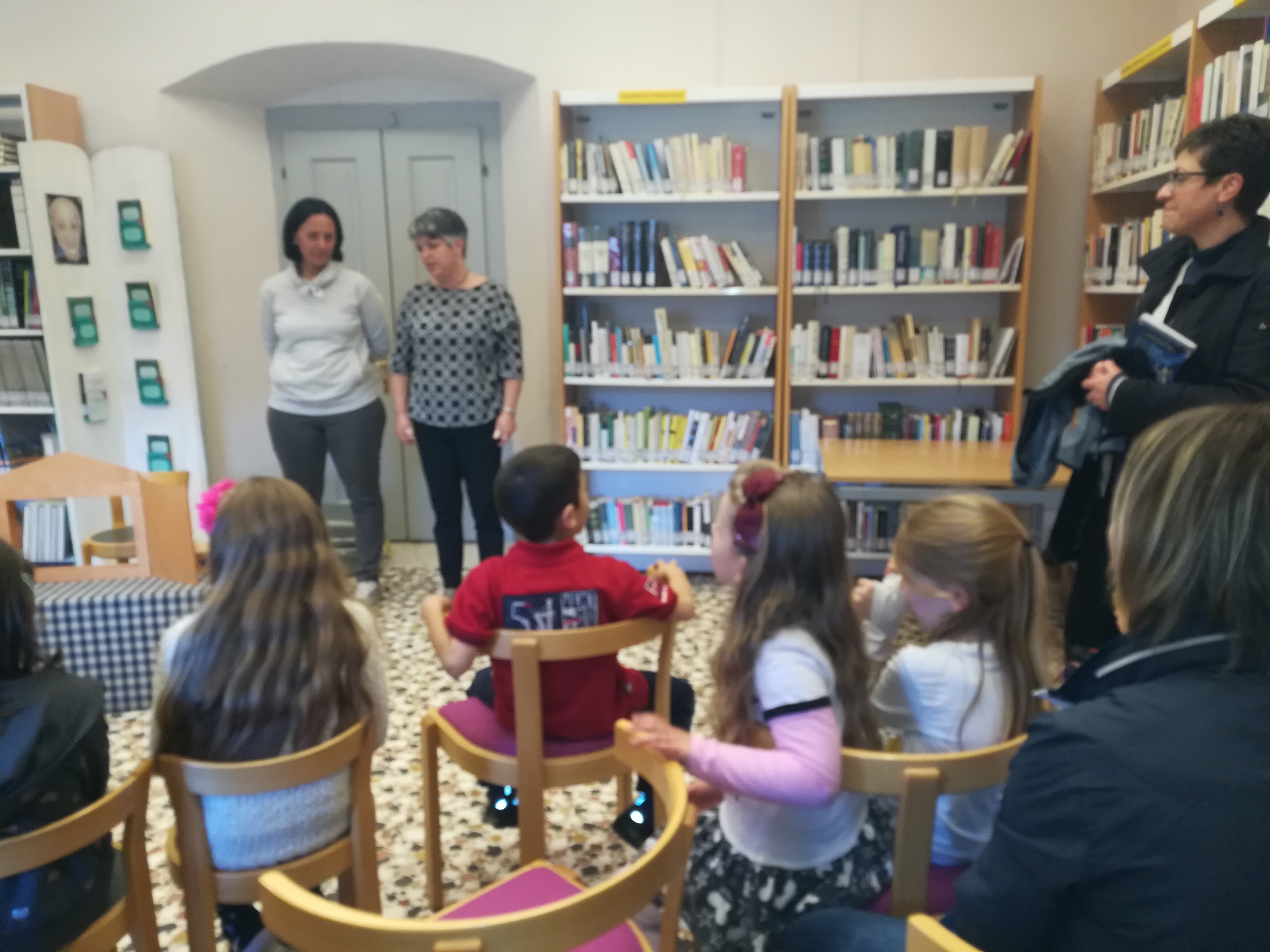 Cose d’altri tempi e luoghi, direte voi. Infatti l’origine è giapponese e i tempi … ma tant’è, Valentina Donati da Lavis, con il supporto di Carla Lenzi e di Sara Candidi, ha portato qui, a mezza montagna, nel Punto di Lettura Fornace, la sua Valigia di Kamishibai. Funziona così: un teatrino in legno, pieghevole: Valentina siede dietro la piccola struttura e man mano fa scorrere quali successivi fondali le diverse successive scene del racconto che … lei stessa va leggendo stampate sul retro dei “fogli scenaâ€. Ai “suoi tempi” il teatrino veniva portato di paese in paese,  a mano, come una valigetta, dal teatrante, il quale, arrivato sulla piazza, attirava gli spettatori con un tamburello di legno e a fine rappresentazione, raccoglieva le loro offerte.