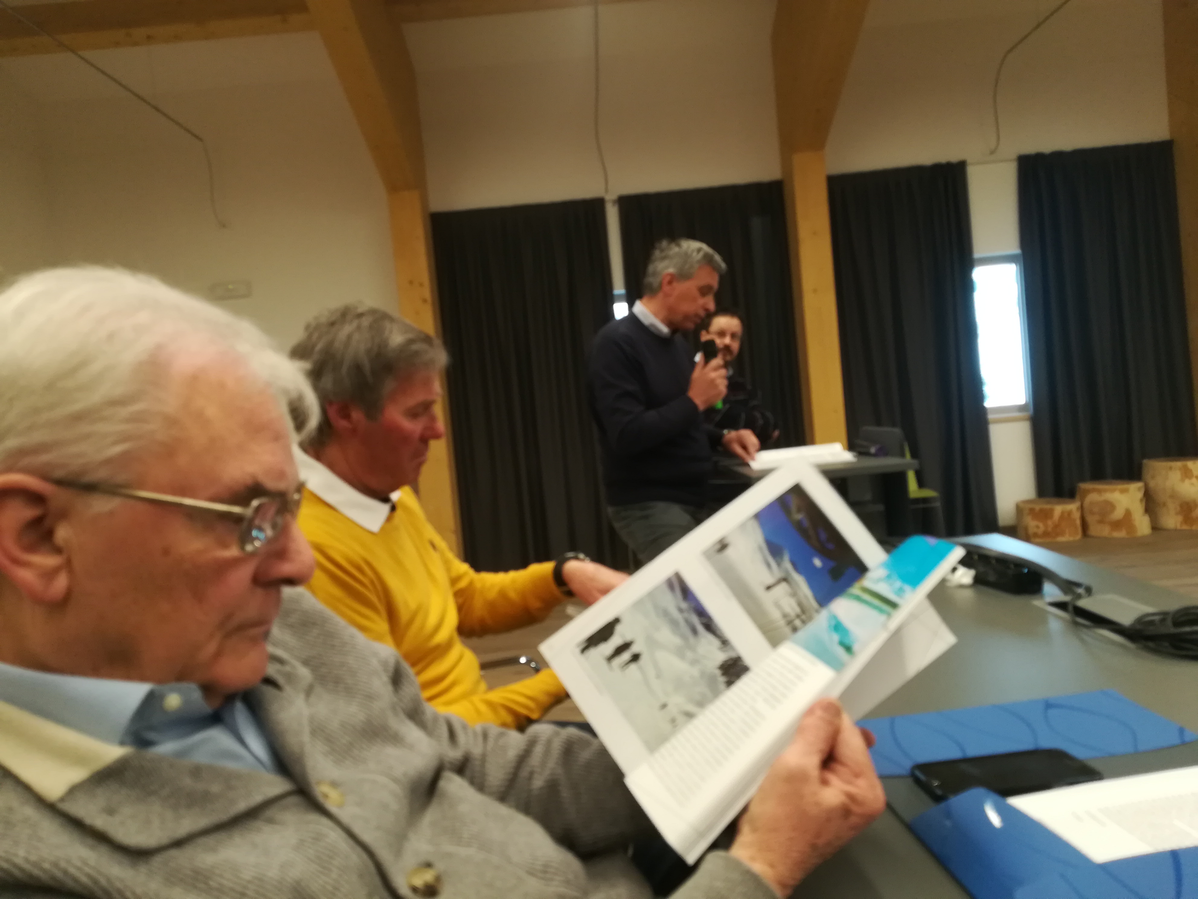 Flavio Mosconi: esauriente e completa la relazione di chi è stato il motore dell’azione locale,  allora e promotore dell’opera letteraria oggi: di un’ opera storica, quella raccontata da Alberto Mosca, una sorta di storia-cronaca, che inizia ben prima della nascita di carosello Tonale. Una testimonianza da un angolo visuale vivo e documentato, stile Luigi Sardi (miglior complimento questo non potrei fargli!). Molto stimolante l’intervento di Giuseppe Panizza. Giacinto Delpero ha elencato i molti investimenti effettuati dalla Carosello, di cui è stato per anni il responsabile. Il mio intervento? Be’ … ho raccontato quello che ho già esposto in molti post precedenti e che è ben riportato nel libro. Inoltre ho molto spinto verso il lancio della stagione bici-estiva. Al riguardo si veda il mio post del 2012: http://www.trentoblog.it/riccardolucatti/?p=6095