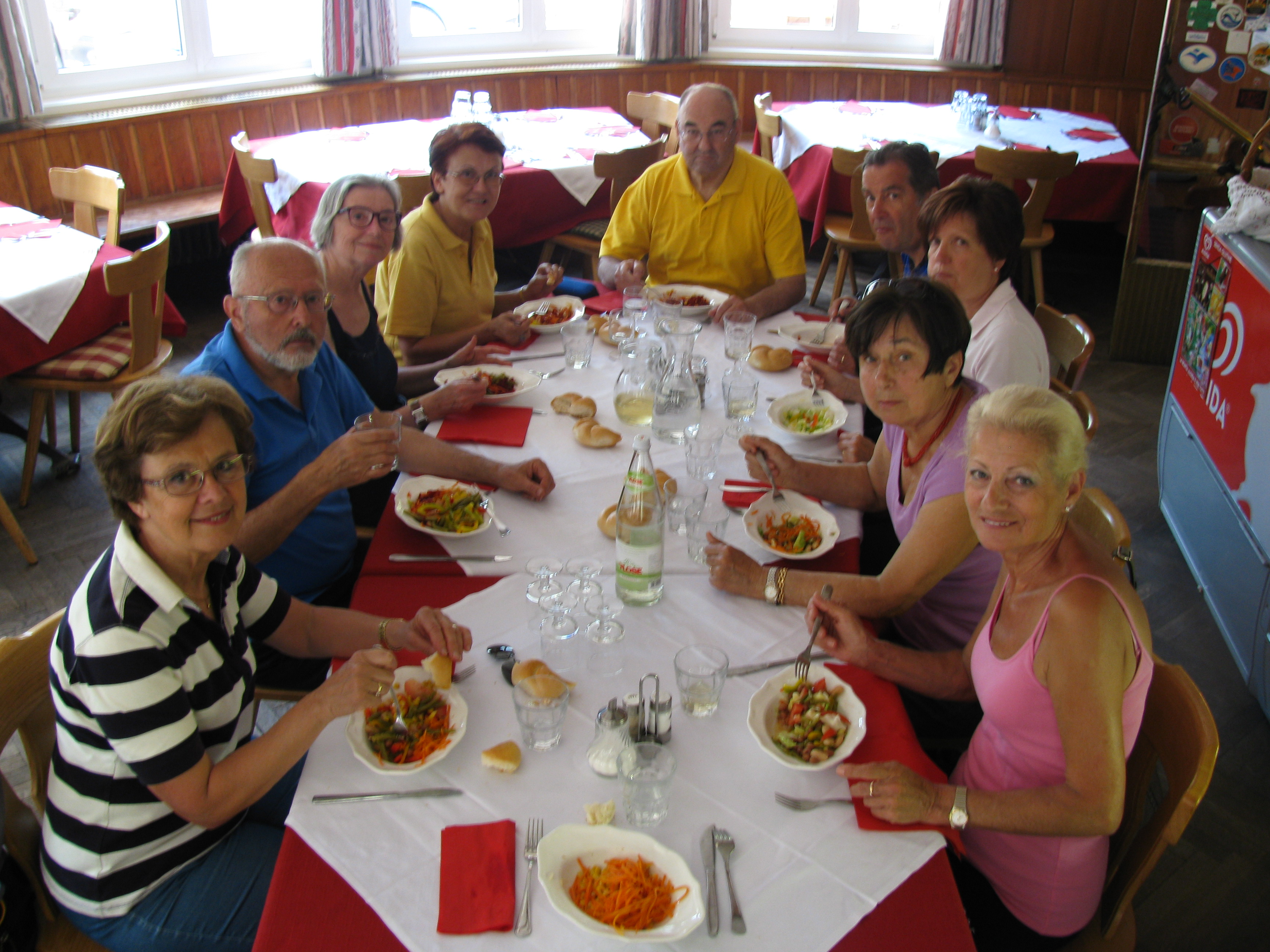 Arrivati a Camitata, circa 1,5 km prima di campo Tures, si conferma la nostra presenza al bar ristorante Brugghof (Biker Gasthof- Pub- Raftingcenter tel. 3482611612) per il pranzo per le 12,30. Menù con poca scelta, ma più che sufficiente: insalate miste a gogo, due primi, carne, contorni, (ma non ce la fate a mangiare primi + secondi!), dolce etc.