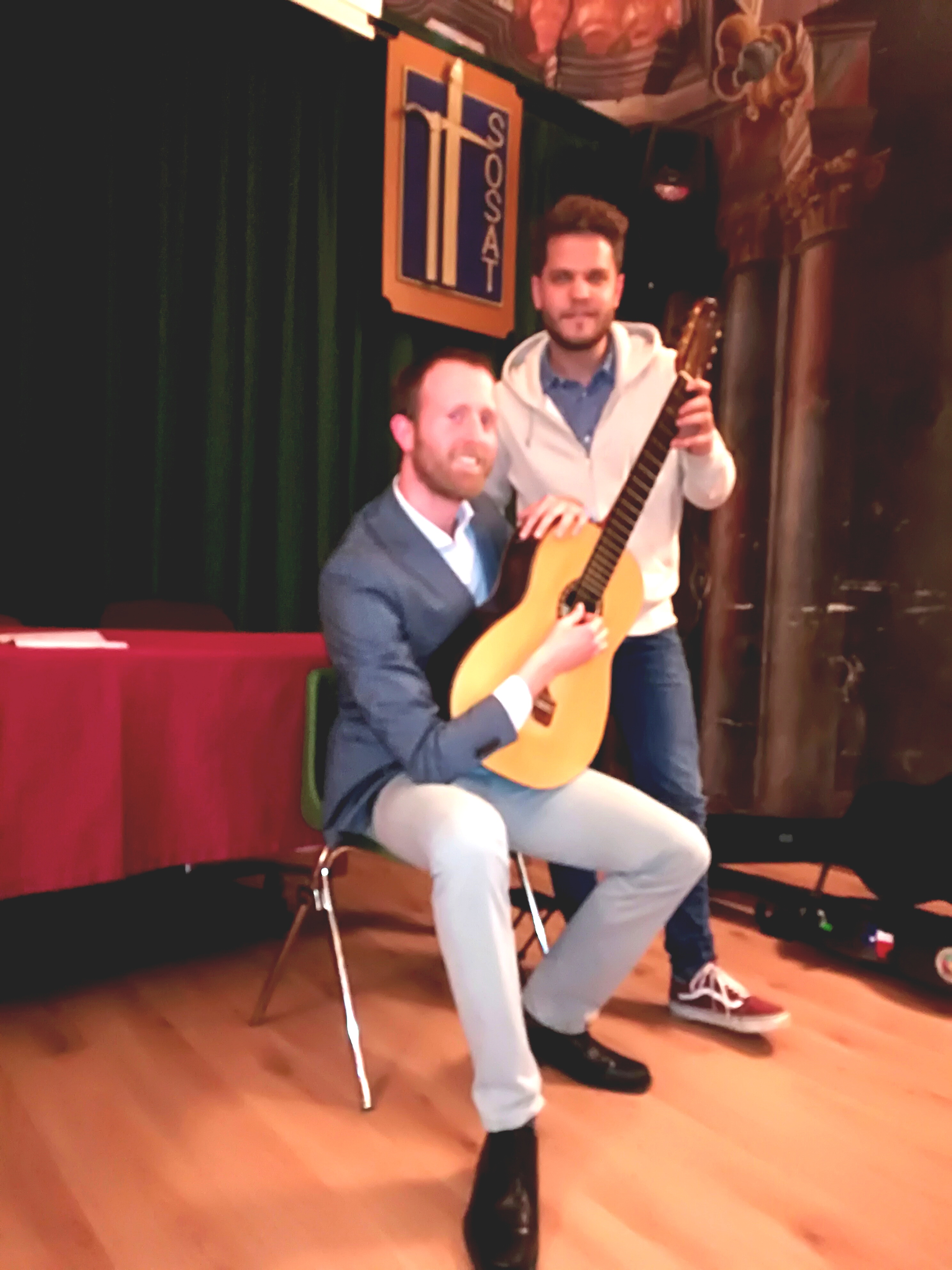 Due giovani uomini (io da 74enne preferirei dire “ragazzi†ma si sa, tutto è relativo!). Giovani uomini comunque e ormai maturi Musicisti, già ampiamente affermati in campo internazionale. Carlo, Trentino d’adozione (già alunno del nostro Conservatorio Bonporti; Socio dell’Accademia delle Muse, Trento; Socio dell’Associazione Amici della Musica, Riva del Garda; Lorenzo, Trentino DOC.