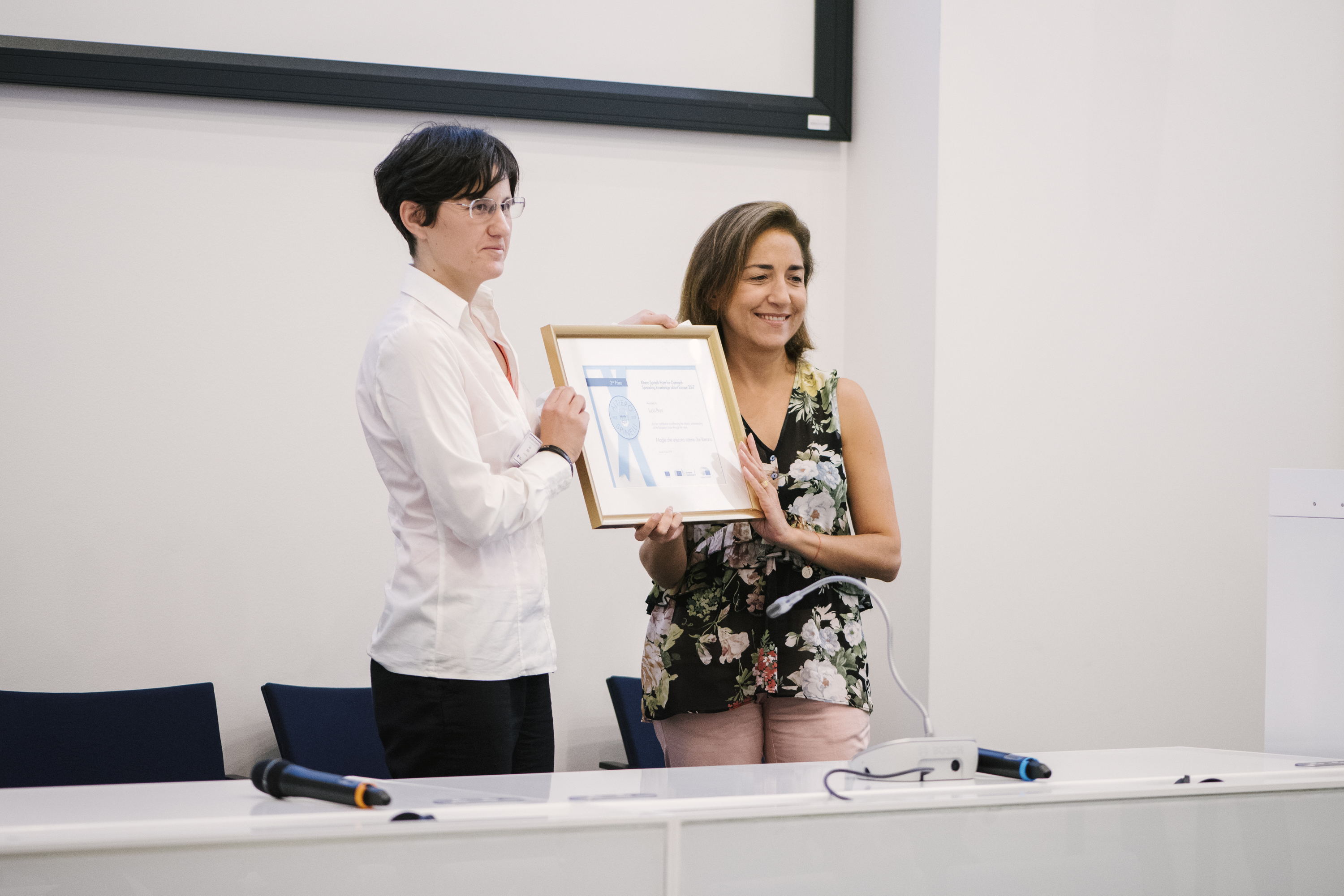 Grazie Presidente Signora Themis Christophidou (Direttrice della Direzione Generale giovani e cultura della Commissione UE, n.d.r.). è un grande onore per me ricevere questo premi e sentire che il mio impegno per far conoscere l’Unione Europea e sensibilizzare ai suoi valori è stato riconosciuto e considerato meritevole.Quello che volevo dire con il mio progetto è che noi cittadini non siamo vittime di ciò che accade sopra le nostre teste: abbiamo la responsabilità di vivere le nostre vite lasciando una traccia della nostra esistenza. Dobbiamo credere che possiamo fare la differenza, che ognuno di noi può dare il suo contributo per il bene comune.Perciò sono molto felice di essere di nuovo qui a Bruxelles, un anno dopo il mio arrivo con la mia bici. Sono molto contenta perchè questo premio incoraggia me – e spero tutti i cittadini europei – a combattere per costruire un’Europa migliore per i cittadini di domani. C’è un piccolo bambino con me a Bruxelles questi giorni, Lorenzo, il figlio della mia amica Silvia, che ringrazio per essere stata al mio fianco dall’inizio di questa avventura: è a motivo dei bambini che vogliamo lasciare un’Europa migliore e un mondo migliore.