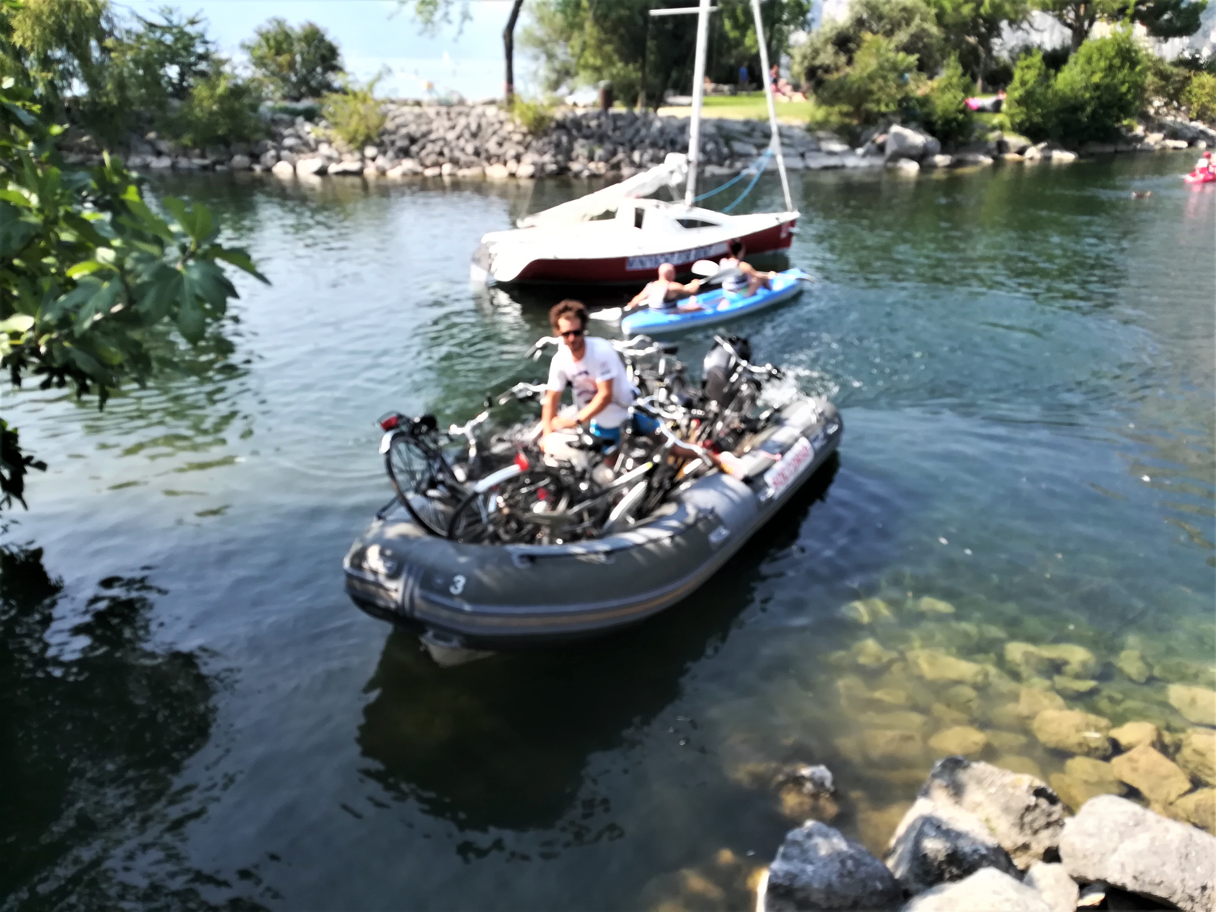 Di che si tratta? Niente di eccezionale, solo del “trasporto†delle bici di una catena alberghiera da un hotel all’altro della sponda del lago. Tuttavia da qui un’idea: così come prima le auto ed ora i bus turistici si sono attrezzati per il trasporto bici, altrettanto potrebbero fare i battelli e i motoscafi taxi del lago. E ciò per integrare quei collegamenti che ancora mancano (e probabilmente mancheranno ancora per molti anni) per circumnavigare via terra e a pedali il Lago di Garda.