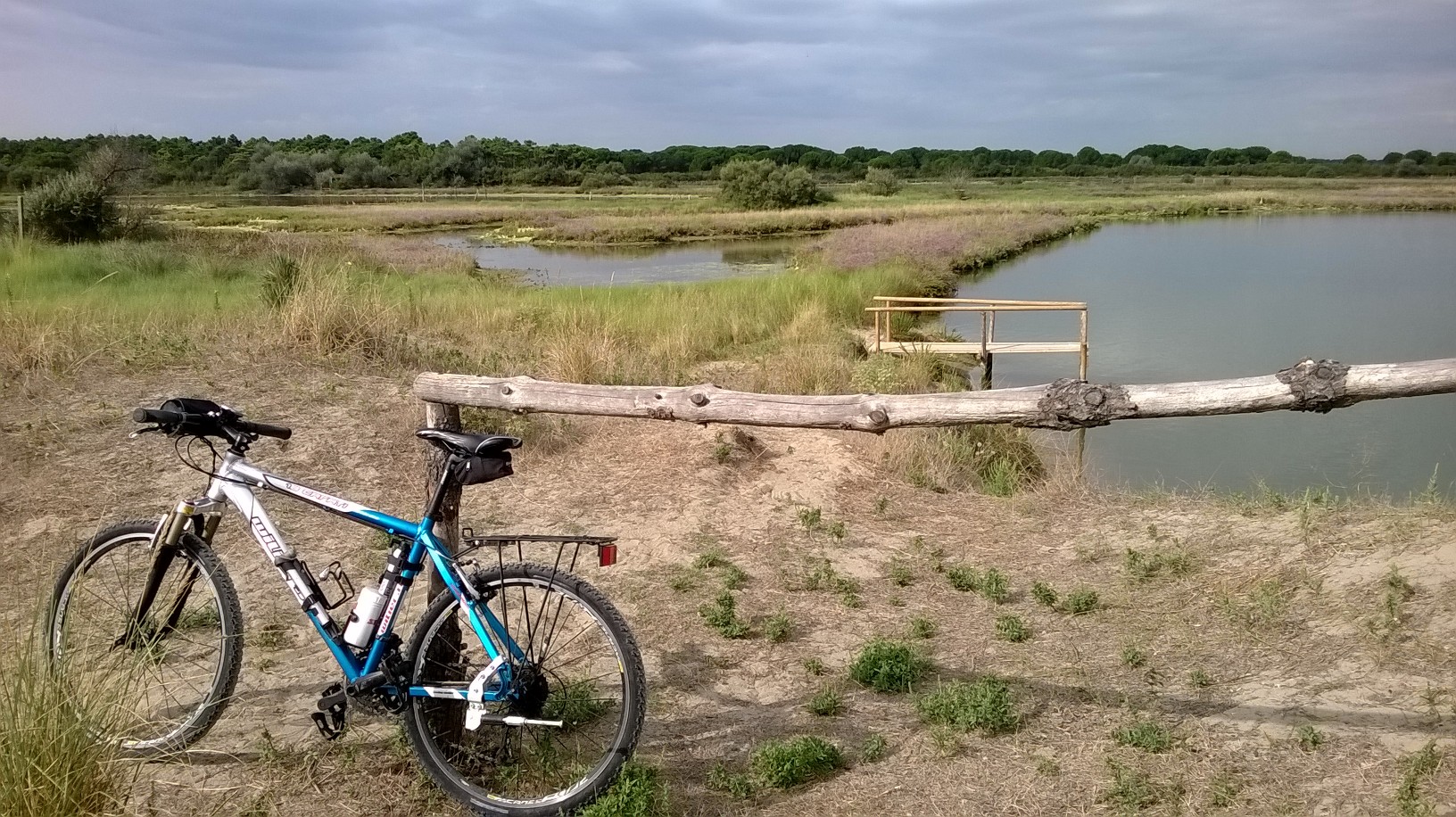 Tot. 42 km di sterrato in strade poderali e pineta che uniti ai giretti di presa di contatto e di commiato sono diventati 45. Bici usata: mtb Wilier 18 carati. Alimentazione: un succo di mirtillo e mezza borraccia di acqua. In totale 3 ore e mezza, (molte) soste comprese.