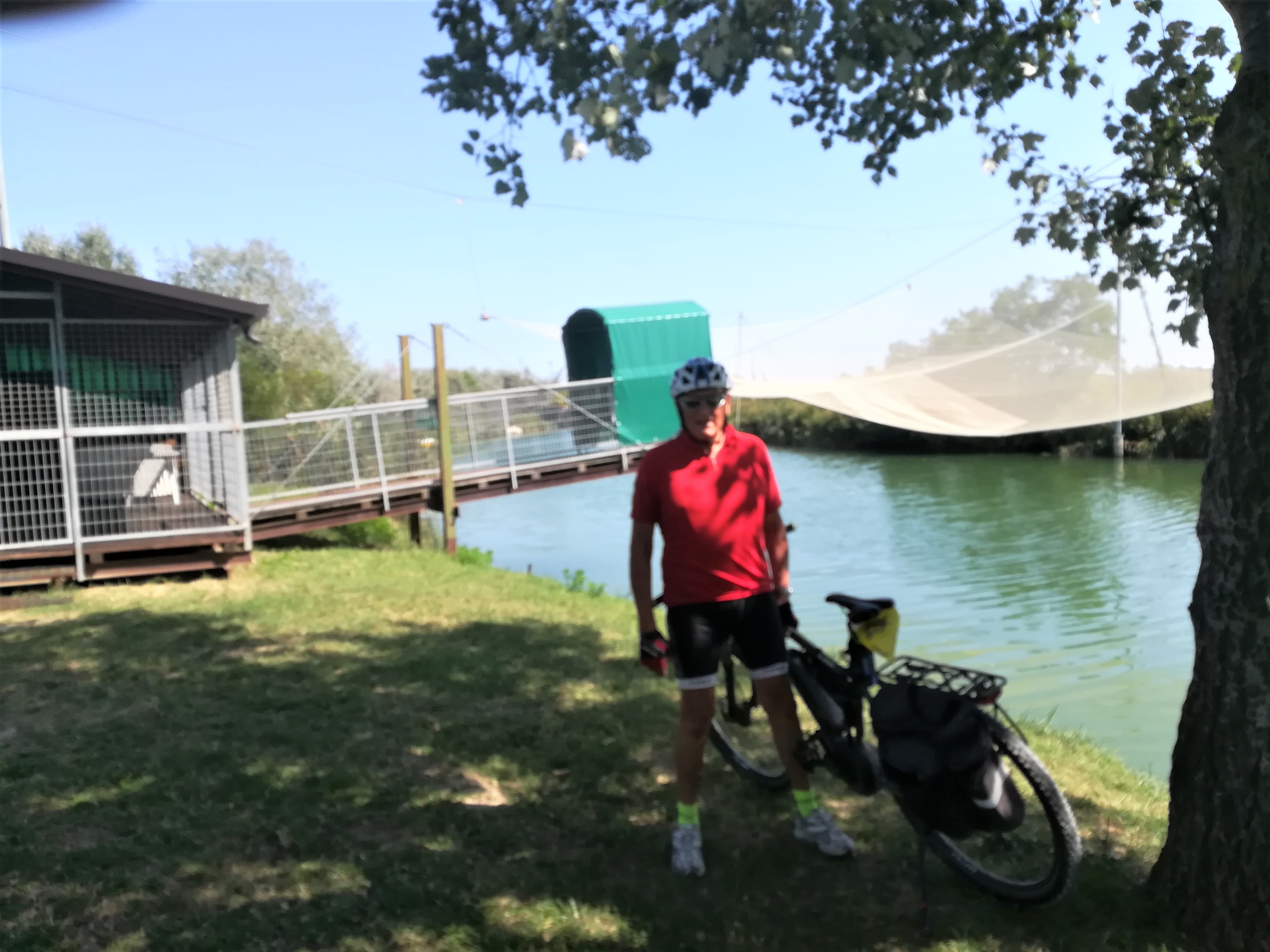 “Alt” sussurra Antonio. A destra un passaggio “segreto” e – bici alla mano – ci addentriamo nella pineta fino ad un capanno nascosto dal quale si osservato gli uccelli.