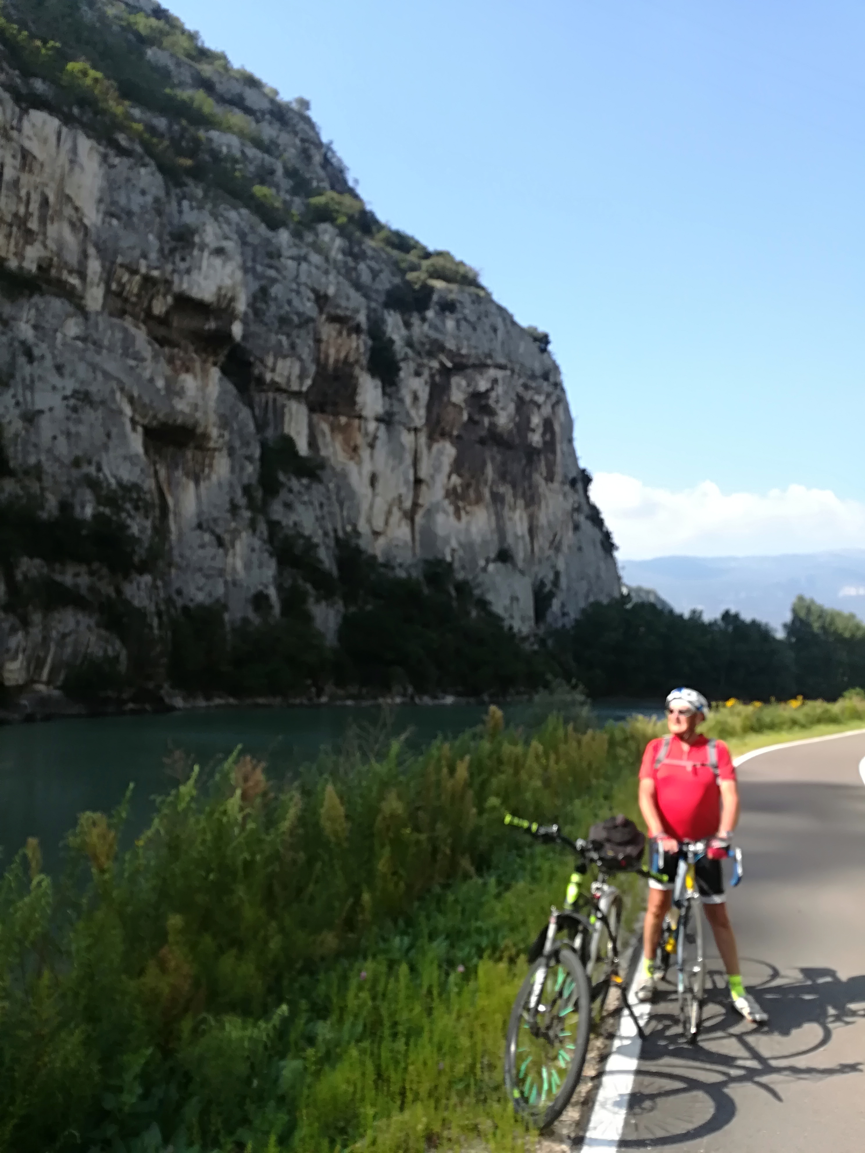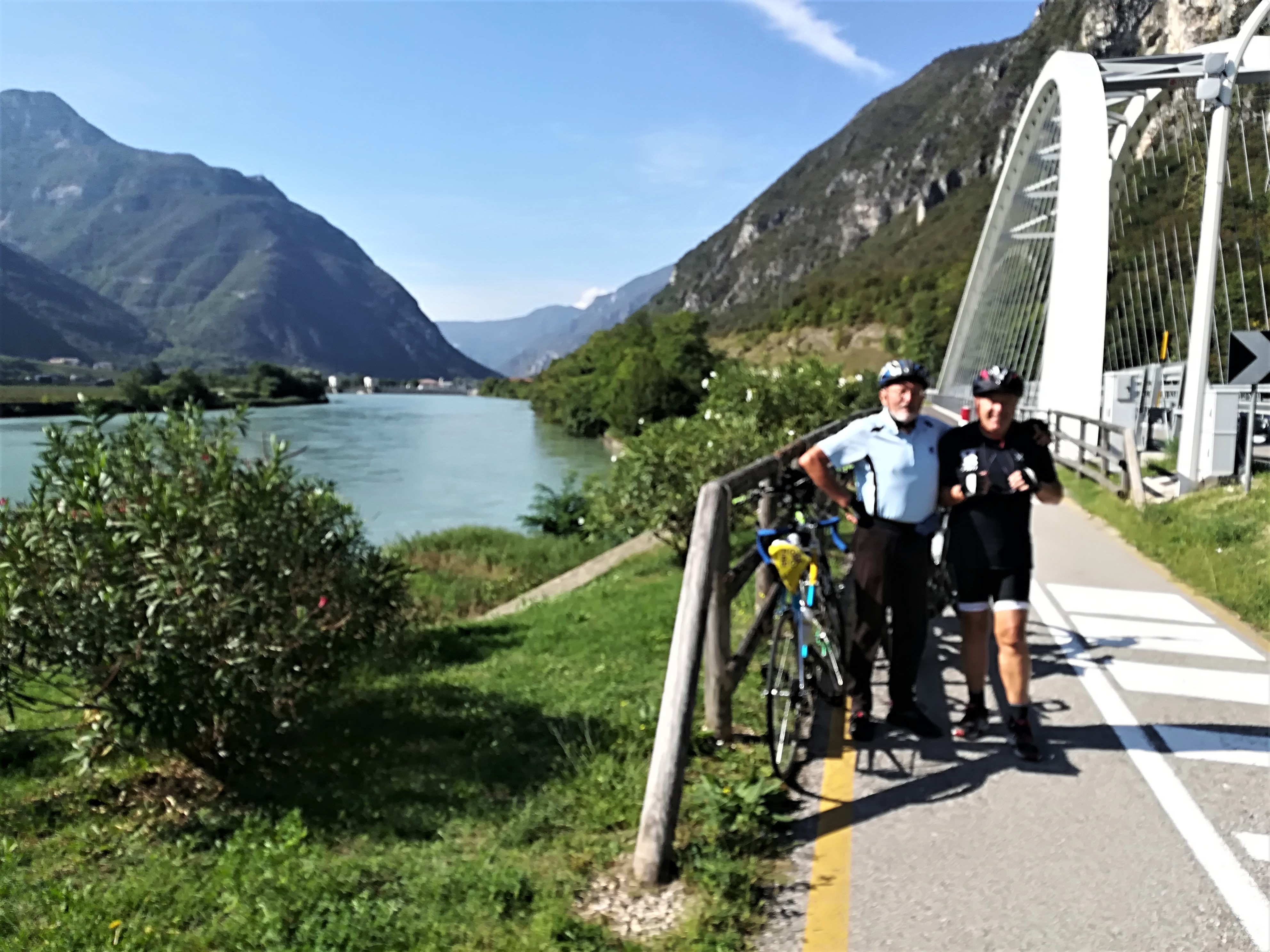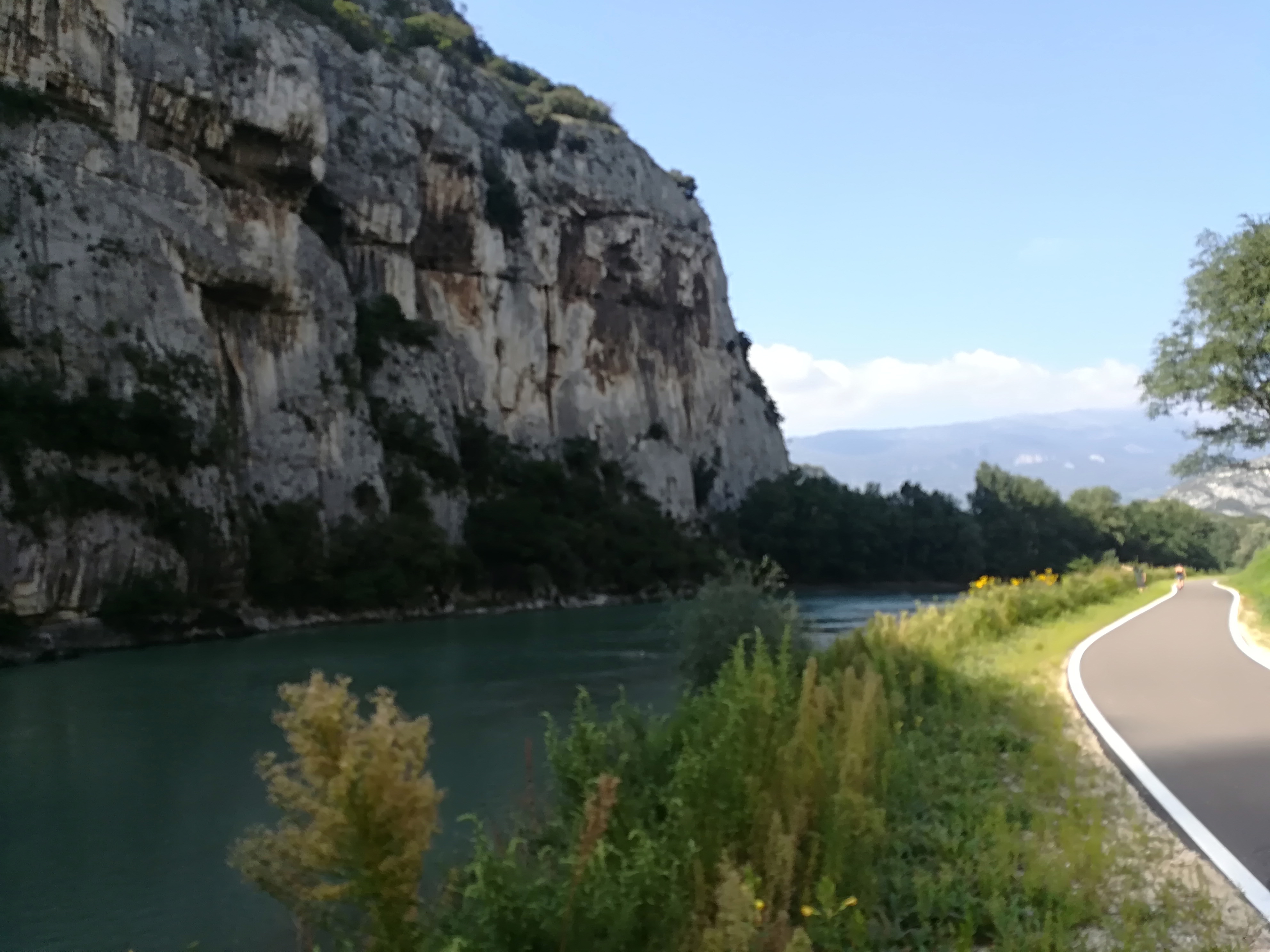 Da quel giorno noi e tanti altri “da Trent” siamo soci della Pro Loco Borghetto all’Adige e amici del suo Presidente Adelio Amadori e dei sui soci locali; da quel giorno ci torniamo molto volentieri un paio di volte all’anno; da quel giorno, ogni anno, partecipiamo alla Festa della Bicicletta organizzata a Borghetto dai colleghi Fiabbini di Valpolicella. Ieri ho voluto condurre i miei due amici Claudio Colbacchini e Giovanni Soncini a vedere la pista ciclabile “oltre Borghetto”, ovvero quella che, superato Ceraino, si snoda a pochi metri dal corso sinuoso dell’Adige in un tratto di una bellezza “mozzafiato” (uso le virgolette perchè il termine non mi piace: tuttavia rende l’idea).