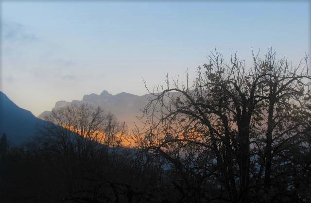 ATTO II° – Una slavina di luce che, provenendo dalla Valsugana, dopo avere “scalato” la rampa di Vigolo Vattaro, insinuandosi fra la Marzola e la Vigolana si precipita a valle a riempire di se’ la conca di Trento, ancora piena di buio.