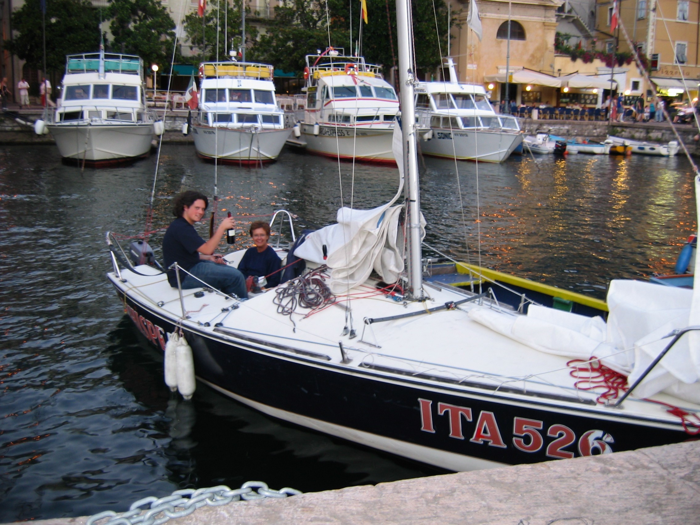Arrivano in macchina da Civitavecchia la moglie ed il figlio di Riccardo (Maria Teresa ed Edoardo), mi caricano sul carrello, e quindi portiamo Luciano a Livorno dove sta sbarcando la sua famiglia. Operazione conclusa. Si torna sul Garda, ove purtroppo quest’anno non riuscirò a fare il Gorla e la Cento, sia per non abusare della disponibilità di Maria Teresa che vuole andare per funghi, sia perché devo rimettermi a posto alcuni particolari dell’attrezzatura che peraltro ha retto benissimo: infatti ho solo subito l’incrinatura del piede dell’albero (che siano i salti provocati dalle onde dei motoscafi?) il che tuttavia non mi ha impedito di terminare serenamente la crociera.