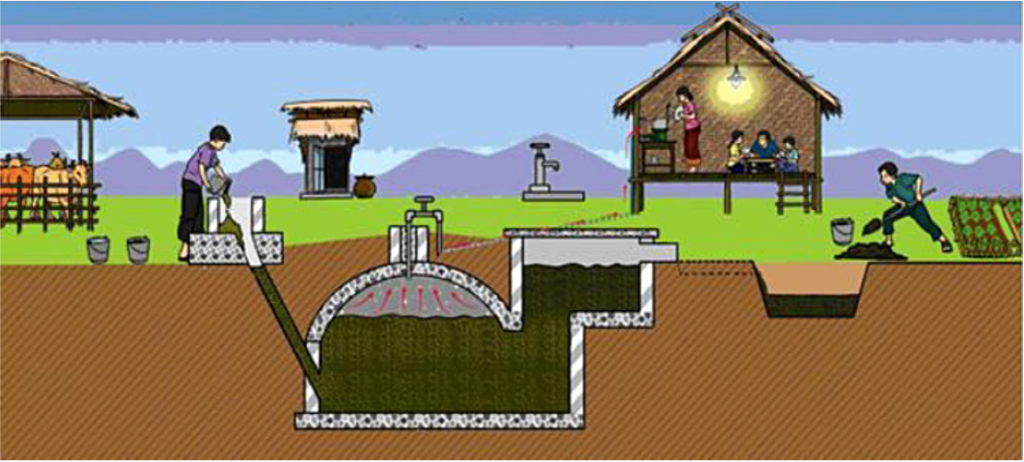 L’impianto può essere di dimensioni maggiori e, quindi, può essere esteso a più case o baracche che forniranno, ognuna in quota parte, il letame delle proprie mucche o capre o …. di produzione umana con un collegamento diretto wc – cisterna. Il letame degassificato è un ottimo concime per l’orto ed ecco realizzata appieno l’economia circolare: letame – gas – fertilizzante – orto – cibo – letame. Lo stato solido si mescola con lo stato liquido dal quale si estrae quello gassoso.