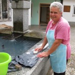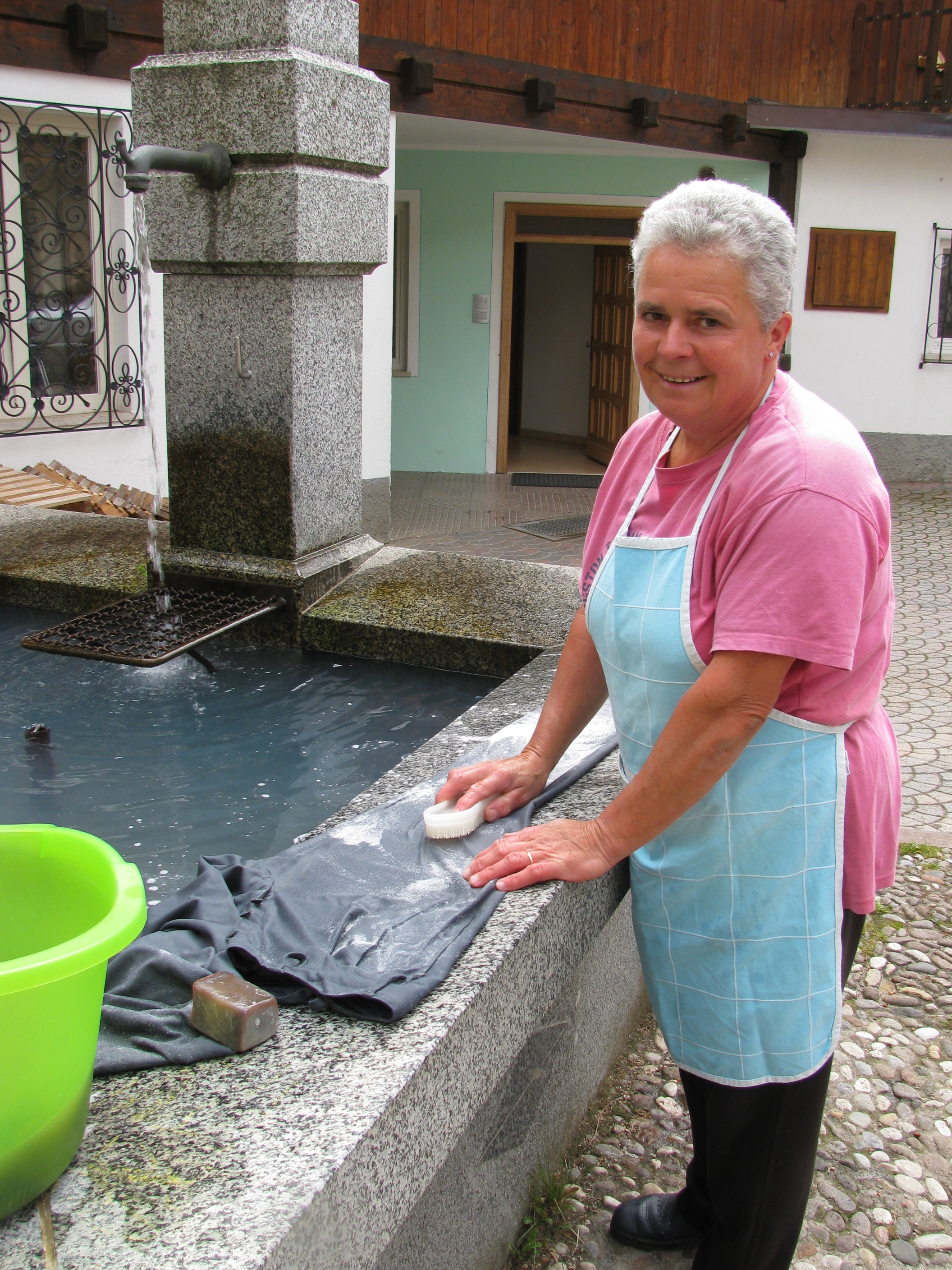 Da Proves scendiamo lungo una stradina che ci conduce fino a Corte  superiore di Rumo. Qui una ignora, che poi ci ha detto chiamarsi Alma, da noi  incontrata e approcciata quasi per caso, sospendendo il lavaggio alla fontana  come si faceva “sti ani†(“nei tempi passati, una volta …), gentilissima, ci  offre un dono: va a prendere le chiavi e ci apre la bellissima chiesetta di S.  Udalrico (del 1400 con successivo altare barocco), affrescata dai Baschenis  nella seconda metà del ‘500. Una chicca inaspettata e quindi tanto più gradita.  Grazie Signora Alma!
