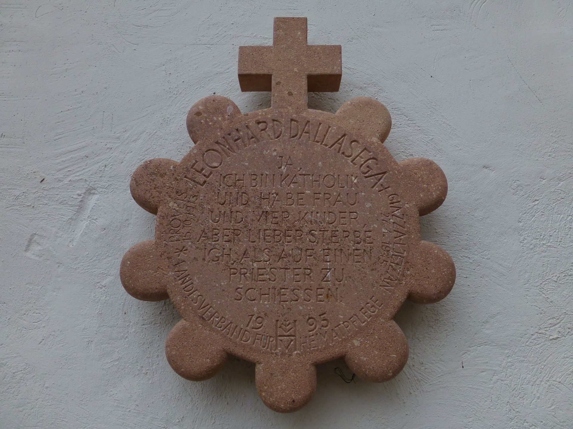 Scendiamo sino al bivio in località Frari e risaliamo fino a Proves,  dove una lapide apposta nel 1995 nella piazza della chiesa recita in tedesco:  “Sono cattolico, sposato, padre di quattro figli, ma muoio volentieri piuttosto  che sparare a un preteâ€. Leonhard Dallasega, 15 ottobre 1913 – 27 gennaio  1945â€. Restiamo sorpresi, storditi, quasi increduli … pensiamo alla povera vedova e ai quattro orfani. Cosa è stato giusto fare? Ciò che ha fatto Leonhard  o sarebbe stato giusto decidere diversamente? Non riusciamo ad sprimere altro  giudizio o sentimento se non una profonda ammirata commozione.
