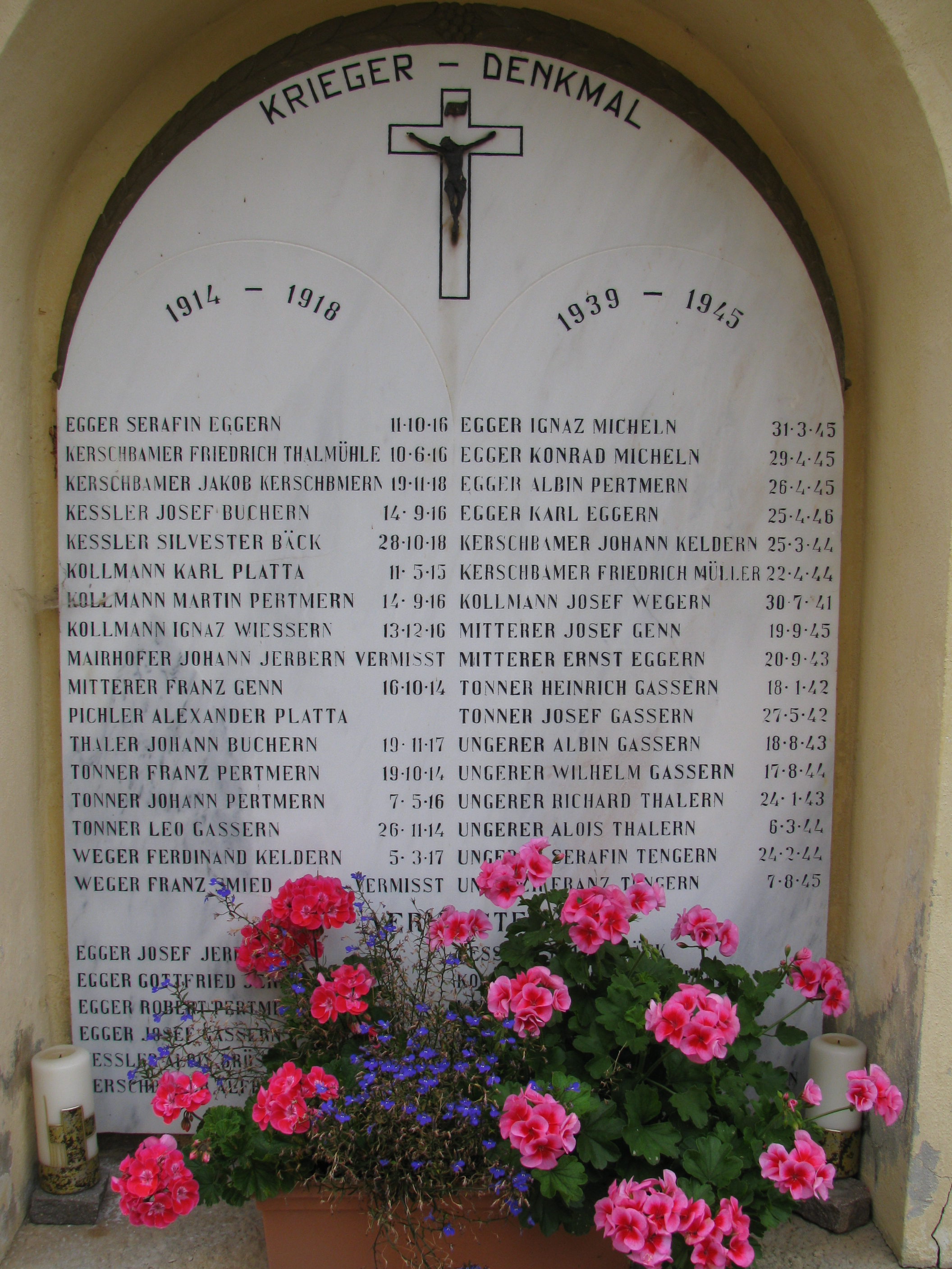 Qui, come in altri cimiteri nei paesi di questa parte della Provincia di  Bolzano, notiamo che i morti della seconda guerra mondiale sono ricordati come  quelli morti nella guerra 1939-1945 (ci saremmo aspettati 1940, anno  dell’entrata in guerra dell’Italia).