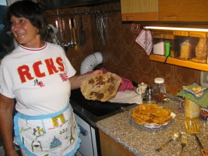 A questo punto vi chiederete … ma i menù? Semplici, per carità … ci siano accontentati di pastasciutta al ragù di funghi porcini, cappelle di ombrelloni impanate, tortello di patate, fontina della valle, insalata e pomodori dell’orto, uva della pergola. Che volete di più semplice di una simile cucina casareccia … alla buona (!) per gente che … si accontenta, appunto!