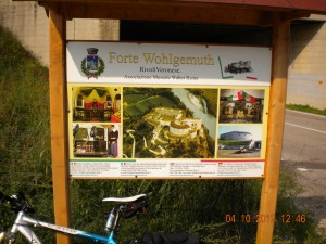 Km. 70. Un cartello mi dice che una ciclabile mi porterebbe a visitare il Forte Wohlgemuth. Non so se poi scede dall’altro versante.