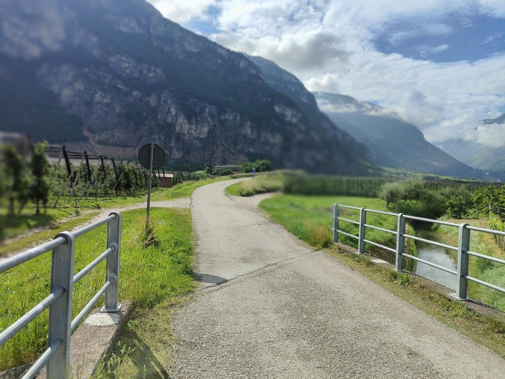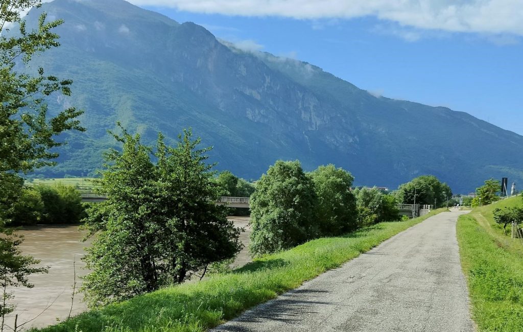Discesina sino ad immettersi a destra verso sud nella “semiciclabile” che corre, elevata, sull’argine destro dell’Adige (km 4):