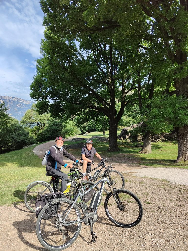 Durante la salita ci siamo alternati con due signore scalatrici anche loro IN E BIKE COME NOI TRE, ma con tanti anni di meno. Evvabbè …