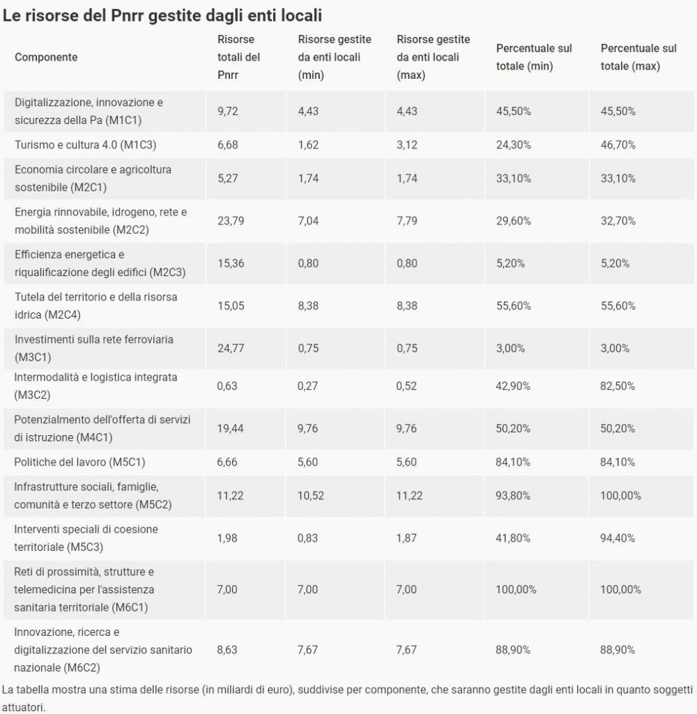 pubblicato da: Riccardo Lucatti - 21 Novembre, 2021 @ 9:09 am| Care amiche e cari amici, oggi voglio sottolineare l’importanza del ruolo degli enti locali nella realizzazione degli obiettivi del Piano Nazionale di Ripresa e Resilienza, su tutti, quello di colmare le disuguaglianze territoriali, sia a livello di servizi offerti ai cittadini che di infrastrutture. Nel PNRR si fa esplicito riferimento al ruolo delle diverse articolazioni territoriali dello stato, ruolo approfondito dal decreto legge 77/2021 che definisce la governance dei progetti legati al Piano, prevedendo, all’Articolo 9, comma 1: “Alla realizzazione operativa degli interventi previsti dal PNRR provvedono le amministrazioni centrali, le regioni, le province autonome di Trento e di Bolzano e gli enti locali, sulla base delle specifiche competenze istituzionali.” Il coordinamento tra lo Stato centrale e l’attività degli organi periferici sarà assicurato dalla Cabina di regia creata per la gestione del PNRR e guidata direttamente dal Presidente del Consiglio dei ministri. All’interno di questo soggetto è collegato un tavolo permanente per il partenariato economico, sociale e territoriale. Per quanto riguarda i bandi PNRR, con un prossimo decreto sull’attuazione del Piano, sarà inserita una norma che prevede la costituzione di un nucleo specifico di personale tecnico dedicato, presso il Dipartimento per gli Affari regionali e le autonomie, proprio per supportare le amministrazioni locali nella fase, che si aprirà presto, delle procedure competitive. La struttura, che prenderà il nome di ‘Nucleo PNRR Stato-Regioni’, oltre a curare l’istruttoria dei tavoli tecnici di confronto con le Regioni e le province autonome, presterà attività di assistenza ai piccoli Comuni, a quelli delle isole minori e delle aree montane. Secondo la stima dell’Ufficio parlamentare di bilancio (Upb) gli enti locali saranno chiamati a gestire un importo compreso tra i 66 e i 71 miliardi di euro. Un valore percentuale importante, compreso tra il 34,7% e il 36,9% dei fondi destinati all’Italia nell’ambito del Recovery and resilience facility. I flussi finanziari principali in cui sono coinvolti gli enti locali riguardano le missioni 2, 5 e 6. Si tratta rispettivamente della transizione ecologica (investimenti stimati tra i 18 e i 18,7 miliardi di euro), di inclusione e coesione sociale (16,9 – 18,7 miliardi) e salute (14,7 miliardi di euro). Una delle voci più significative riguarda la seconda componente della missione 5, ovvero interventi legati a infrastrutture sociali, famiglie e terzo settore per un valore stimato tra i 10,5 e gli 11,2 miliardi di euro, pari al 93,8% delle risorse dedicate a questa voce. Un’altra componente rilevante è quella relativa al potenziamento dell’offerta di servizi di istruzione, in questo caso i flussi finanziari che saranno gestiti dagli enti locali sono stimati in 9,8 miliardi di euro, pari al 50,2% delle risorse complessivamente allocate. Una terza voce importante riguarda la tutela del territorio e delle risorse idriche. In questo caso le risorse che saranno intermediate dagli enti locali ammontano a 8,4 miliardi, pari al 55,6% delle risorse complessive. |