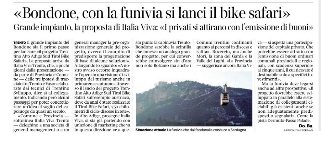 CABINOVIA TRENTO-MONTE BONDONE: ITALIA VIVA TRENTINO SI E’ PRONUNCIATA