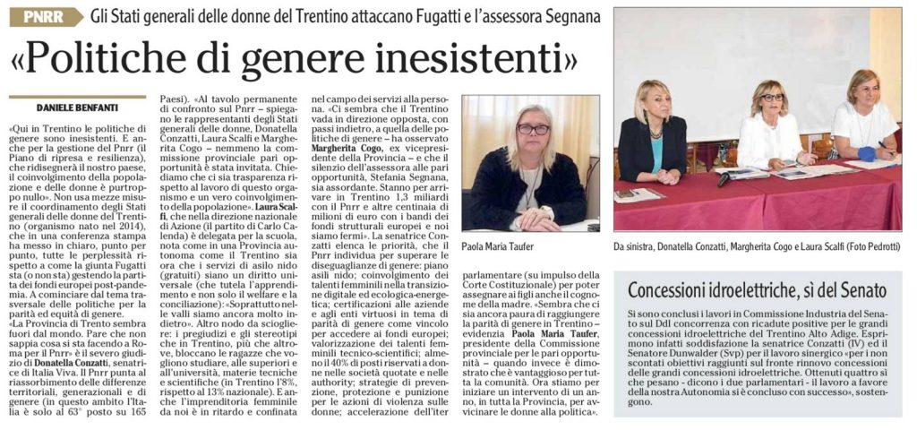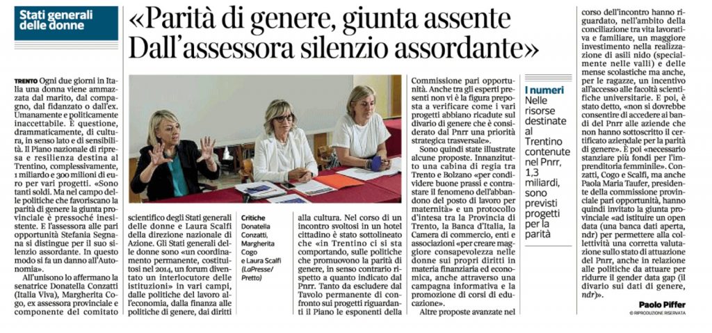 NOI DI ITALIA VIVA TRENTINO SIAMO CON LA NOSTRA SENATRICE DONATELLA CONZATTI IN FAVORE DELLA PARITA’ DI GENERE!