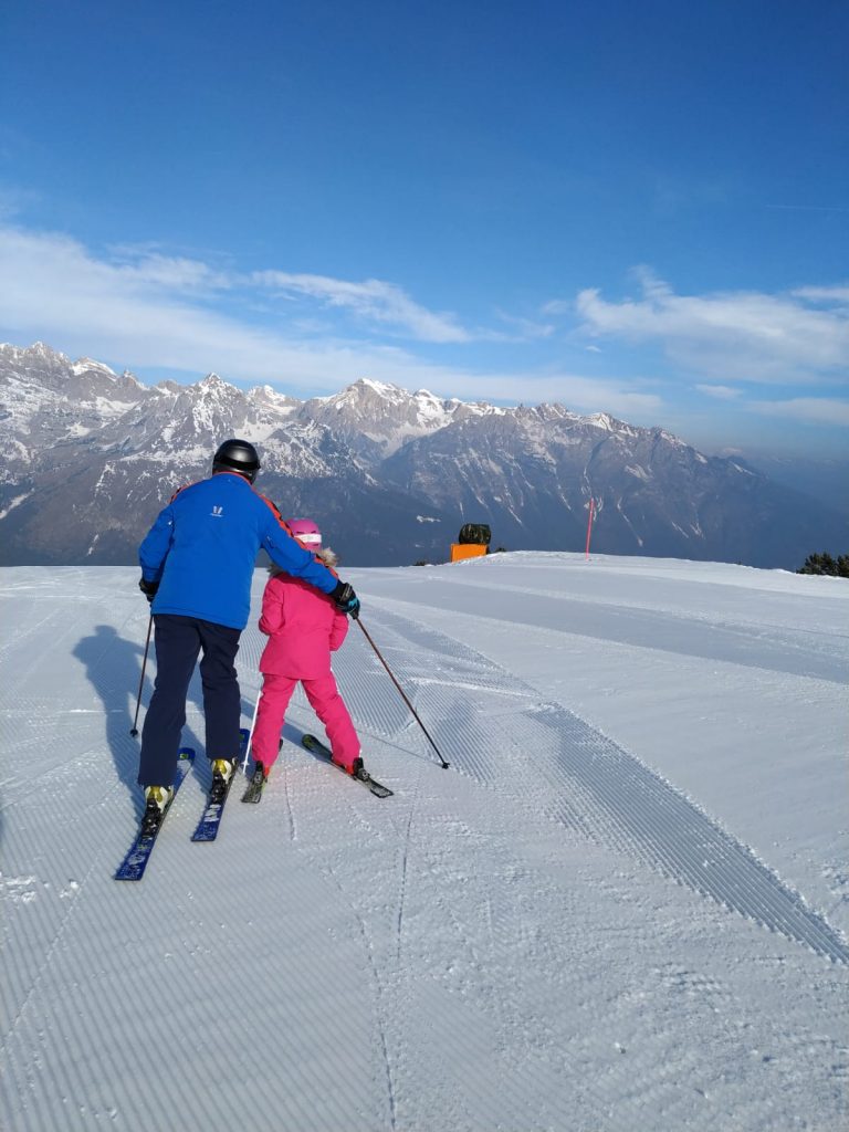 Inverno 2019-2020, neve regolare, non abbondante ma si sciava bene anche grazie all’integrazione della neve sparata. Sul finire della stagione arriva il Covid: ricordo una delle ultime sciate, nella cabinovia che dal Passo del Tonale sale al Passo Paradiso e poi ai 3000 metri della base dell’ultimo strappo che porta chi vuole salire a piedi (con scarponi e tecnica da alpinismo invernale, mi raccomando!) alla Cima Presena (3068). Nel primo tratto, stipati come sardine, ci siamo tirati il salvagola su naso e bocca e … l’è nada, è andata! Arrivati ai 3000 metri, una foto (sovraesposta, ma vabbè …) con lo sfondo del ghiacciaio del Mandrone nel gruppo dell’Adamello. Altra foto, in Paganella a fare da maestro di sci ad una nipotina.
