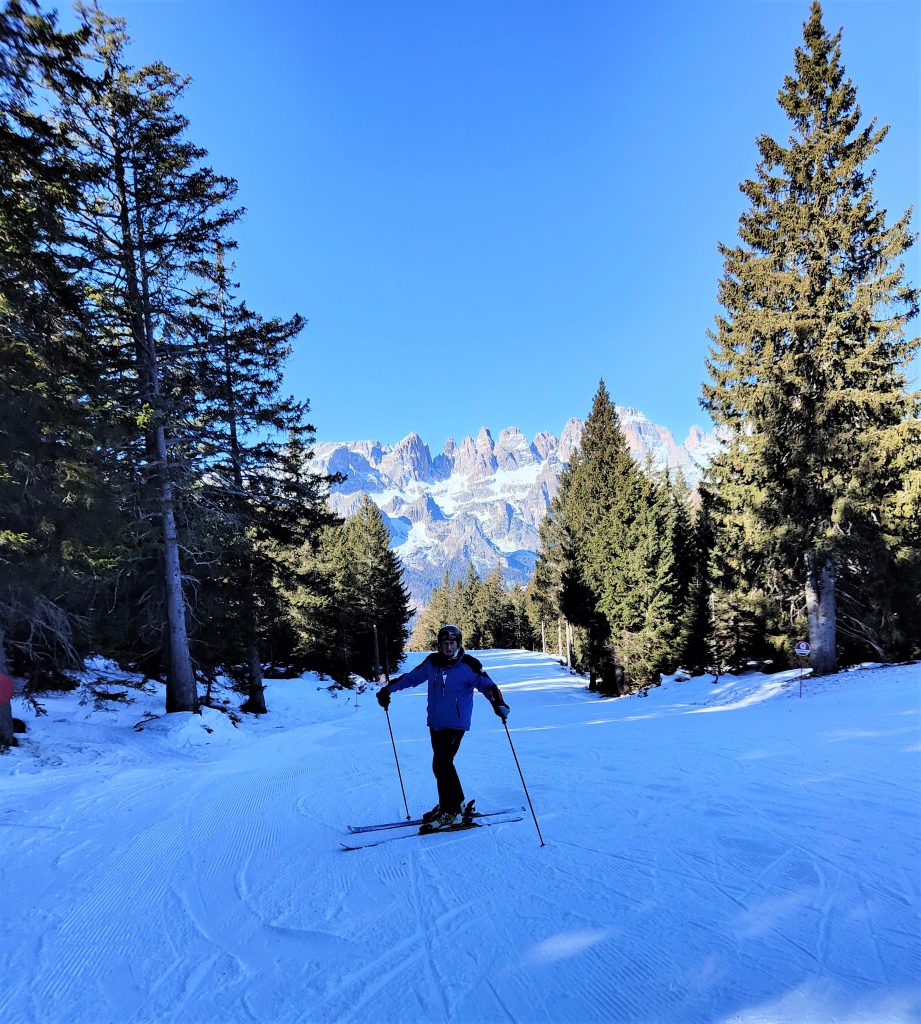 Inverno 2021-2022, poca neve ma i “cannoni” hanno fatto la loro parte. La foto? Io sulla “mia” Paganella (sono o non sono un VIP-Vecchietto In Paganella? ) con lo sfondo delle Dolomiti di Brenta.