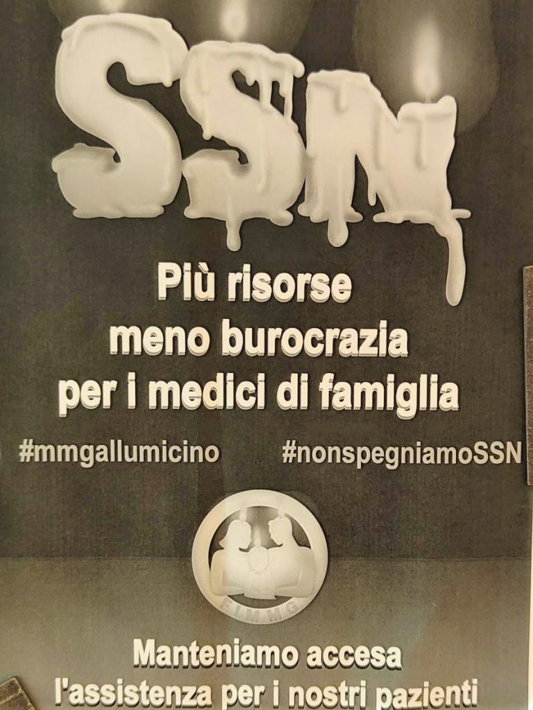 I Medici di Famiglia, veri e propri General Manager, specializzati nel general management del paziente. Sono quelli sui quali ricade il 90% delle richieste di prestazione. Il mio amico, recatosi come sopra dettovi dal suo ottimo MdF, mi ha spedito la foto che di un manifestino apposto sulla porta di quello studio. I MdF reclamano meno burocrazia e più risorse. Dico: “Ma ora arrivano i 37 miliardi del MES Sanitario”. L’amico risponde “Beato te che ci credi!”