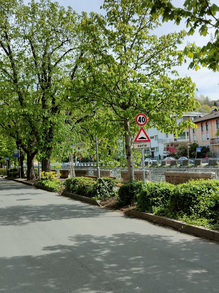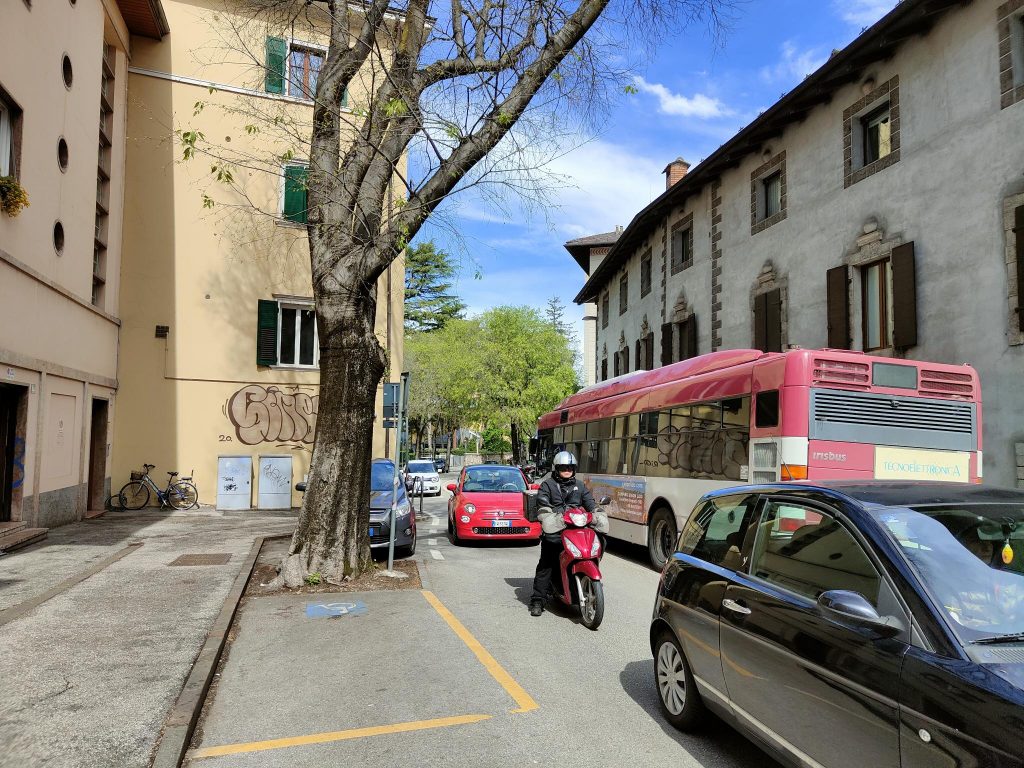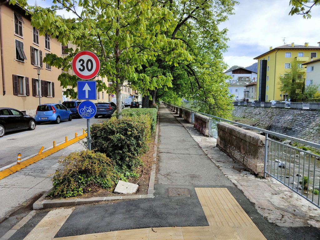 3 – Scendendo in discesa in auto o in bicicletta dalla Fersina lungo la Via Fiume, dopo un centinaio di metri a ridosso di una curva si incontra una strettoia con attraversamento pedonale. Lungo questa discesa spesso le auto procedono a velocità troppo elevata. Sarebbe utile limitare la velocità a 30Kmh almeno in prossimità di questa strettoia.
