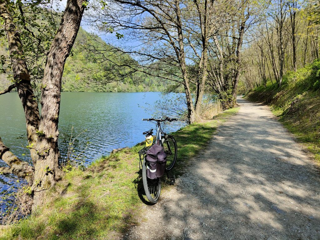 Vi regalo la foto scattata lungo la deliziosa passeggiata che costeggia il lago di Levico, percorso vietato alle biciclette ma in bassissima stagione se po’ fa’ … Più tardi dettaglierò meglio la pedalata: ora ho appena mangiato e mi concedo una piccola pennichella.